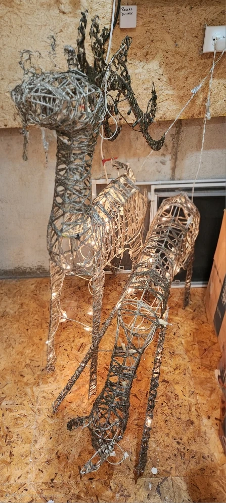 Decorative reindeer set with integrated lights. Perfect for holiday displays! Constructed with a wire frame and wrapped material, they're ready to add some festive cheer.