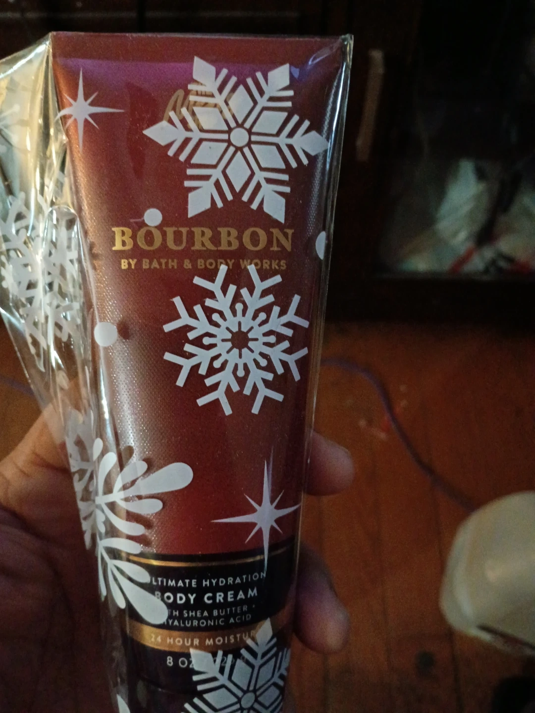 This is Bath & Body Works Ultimate Hydration Body Cream in the Bourbon scent. It contains Shea Butter and Hyaluronic Acid. It provides 24-hour moisture.