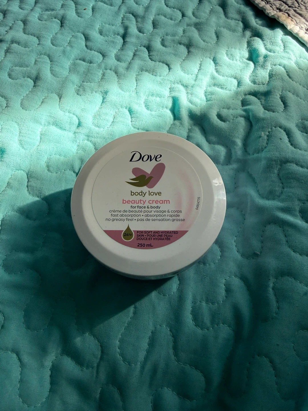 This Dove beauty cream is for face and body. It offers fast absorption and a non-greasy feel for soft, hydrated skin. 24hr hydration is provided. 250 mL container.