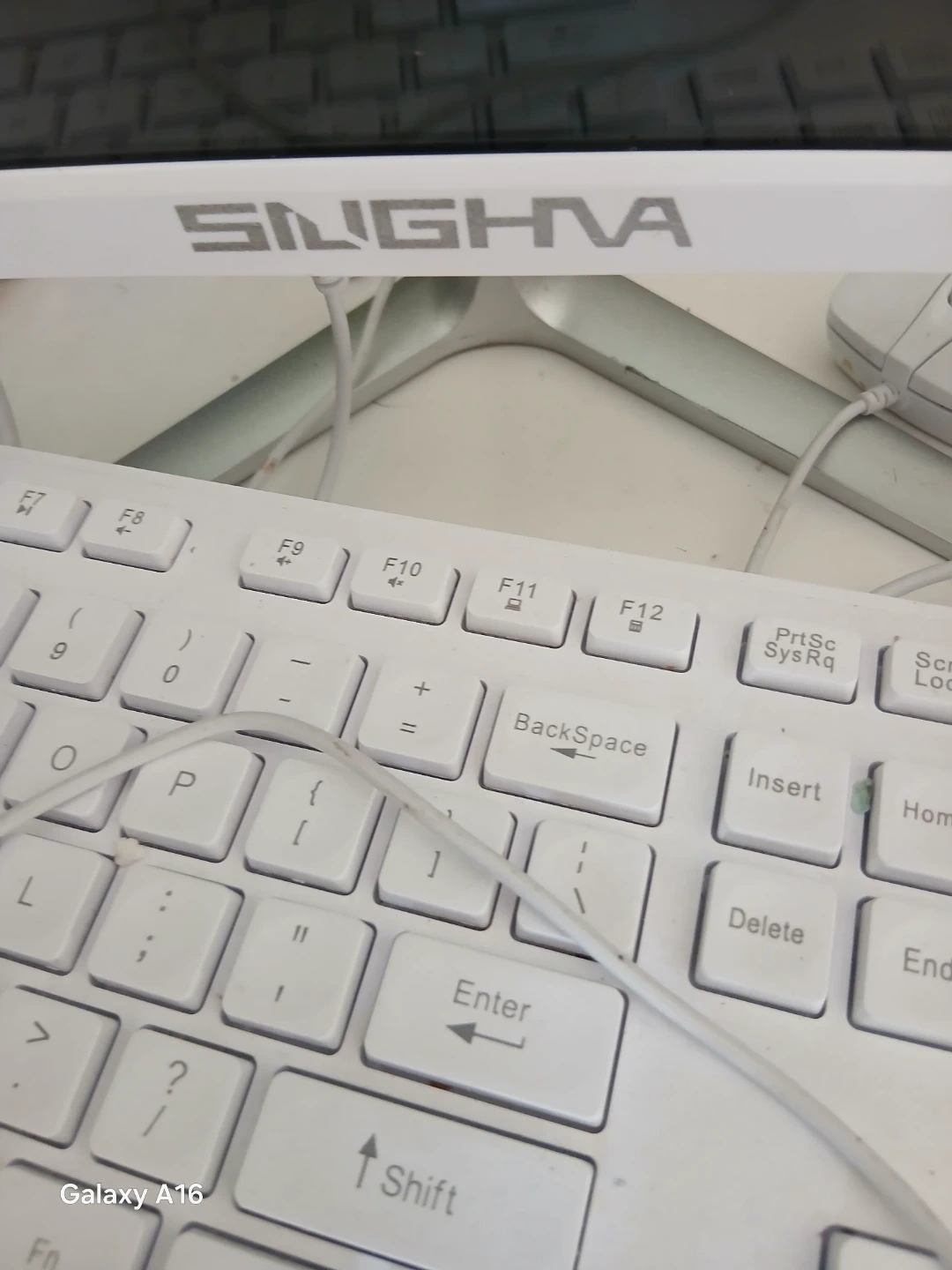 This is a white touch screen SIGNA frsk top and keyboard set. The keyboard is a full-sized QWERTY layout with a numeric keypad. It's great for everyday computer use. The screen got cracked by slipping out of my hand when I tried to move it , but it does.not.inhibit the fuction of the.computer.