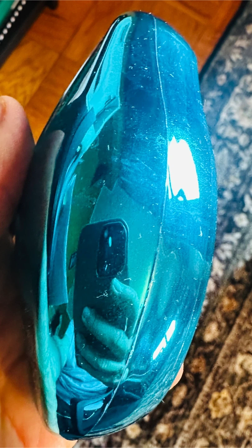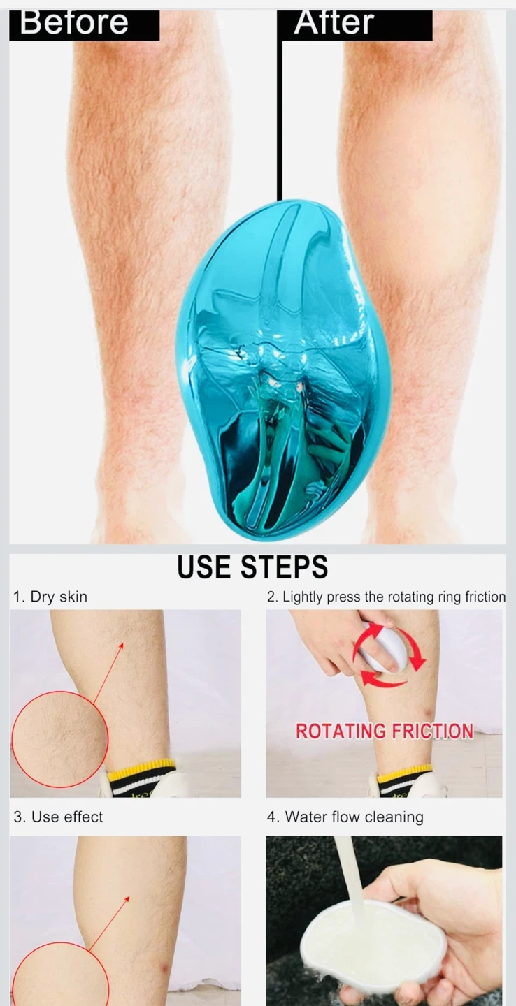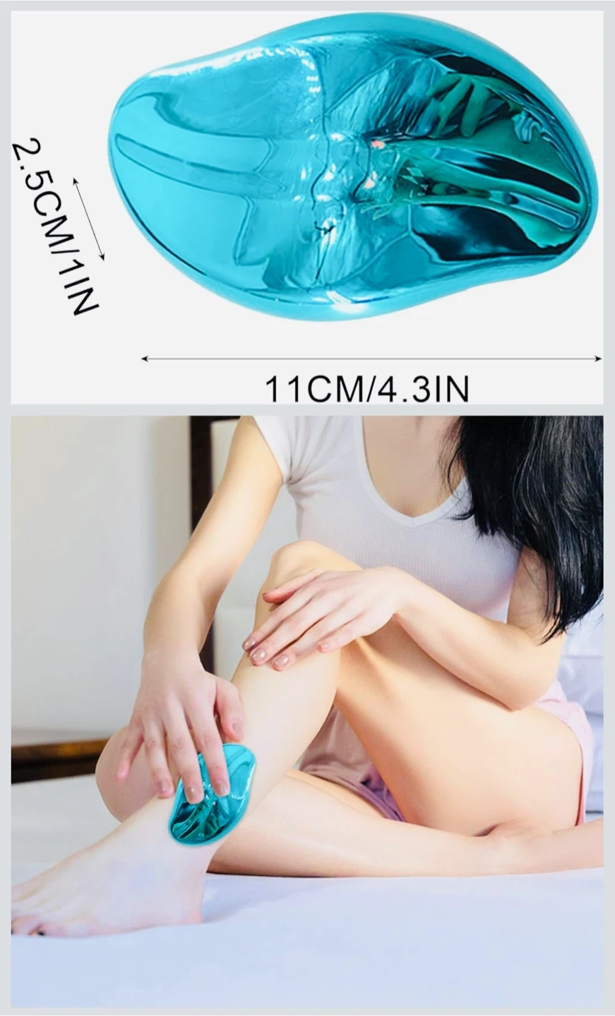 This crystal hair eraser tool features a smooth surface and a textured side for hair removal. It measures 11cm by 4.3 inches in length and 2.5cm or 1 inch in thickness. The durable plastic casing is a vibrant blue color. This device is perfect for achieving smoother skin!