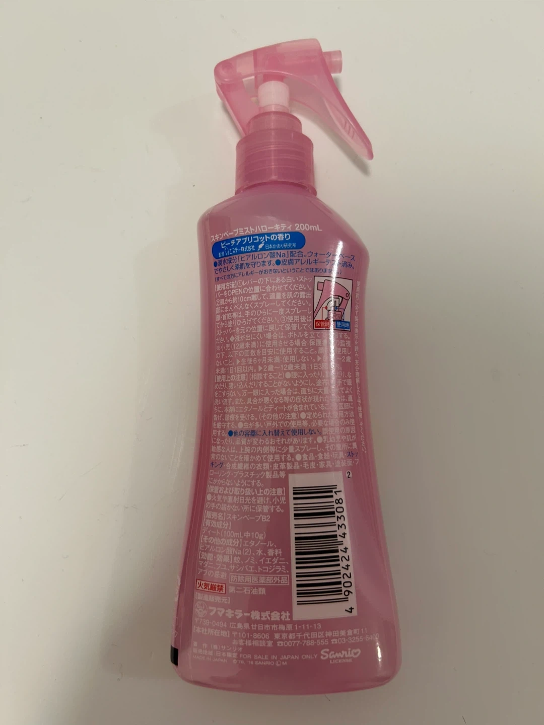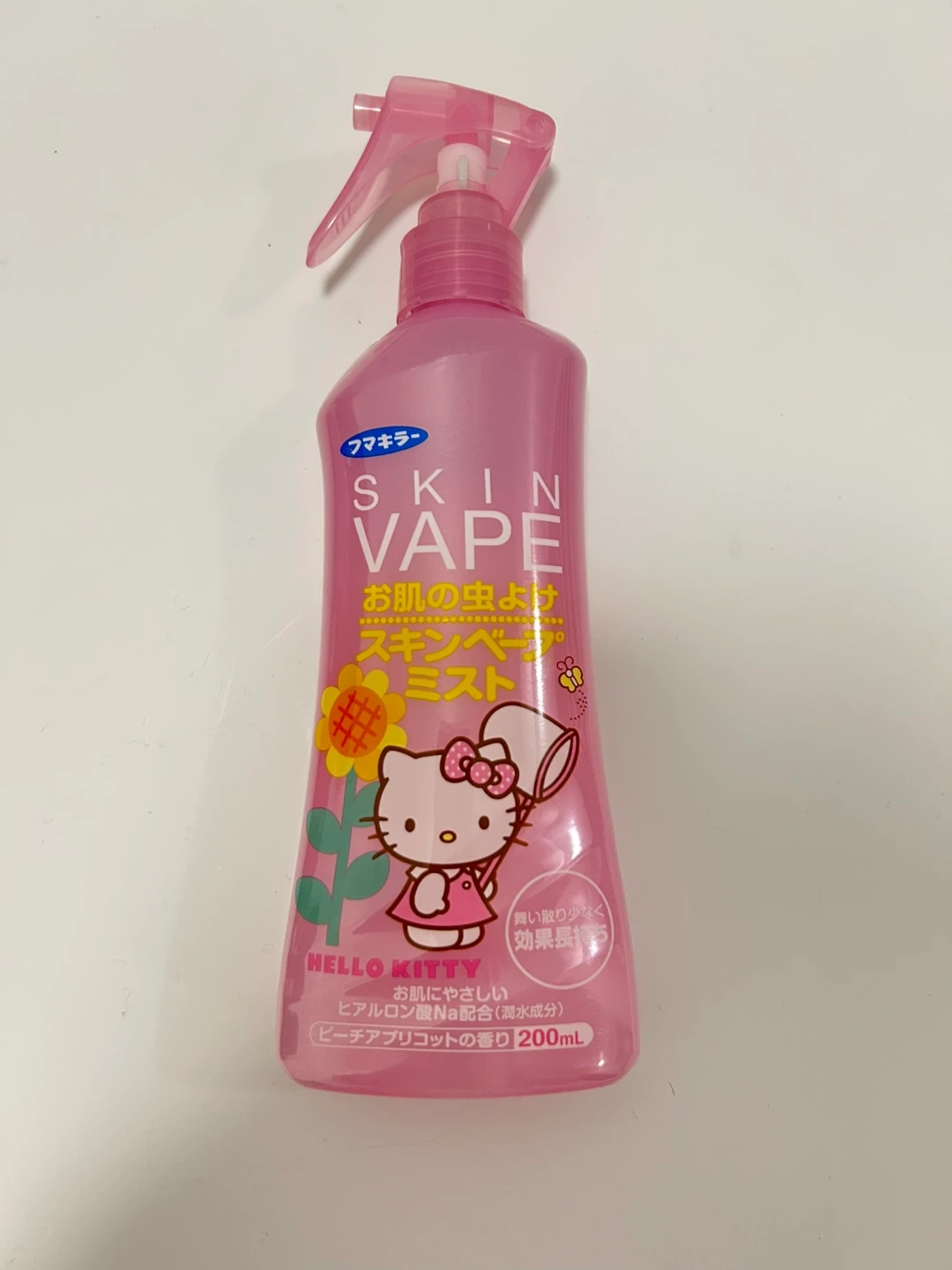 Keep those pesky bugs away with this Skin Vape Hello Kitty mosquito repellent! This adorable spray bottle contains peach apricot scented mist, perfect for keeping your skin protected.