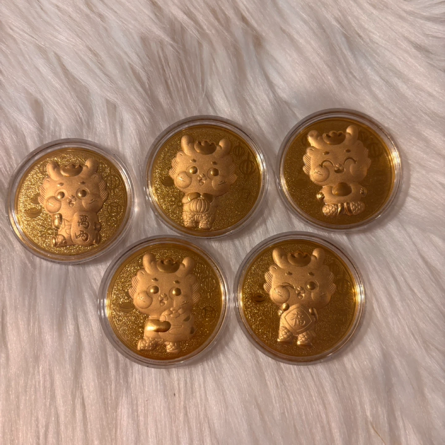 Set of 5 Collectible Gold Coins with Dragon Cartoon Characters