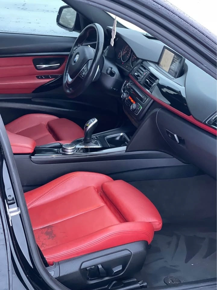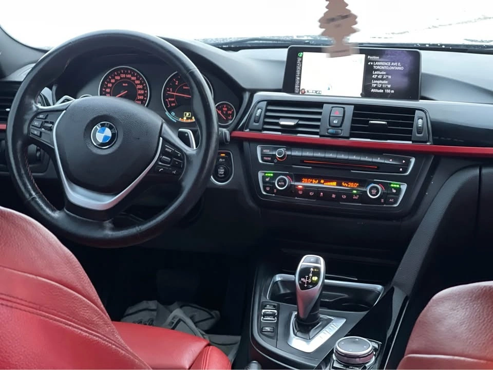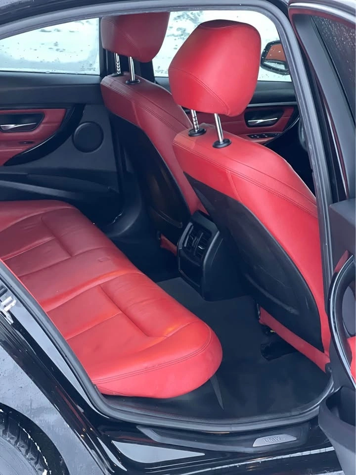 Selling a 2015 BMW 328i xDrive with All Wheel Drive. It has a beautiful red interior, sport seats with lumbar support, auto stop/start, auto high beams, and auto wipers. Features include power windows, sunroof, steering wheel controls, CD player, keyless entry, heated seats, and a heated steering wheel. This car is great on fuel, with a 4-cylinder turbo engine. It offers Sport/ECO/Comfort modes, paddle shifters, and tinted windows all around. Enjoy dual climate control, cruise control, navigation, Bluetooth/USB/AUX, turn signal mirrors, a backup camera, and parking sensors. It comes with winter tires installed. The vehicle runs and drives with no issues and no warning lights. Clean title. Sold as is.