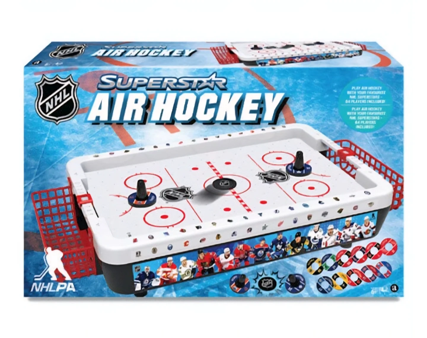 This is the NHL Superstar Air Hockey table. It includes 4 players, perfect for a fun game night! Play air hockey with your favourite NHL superstars.