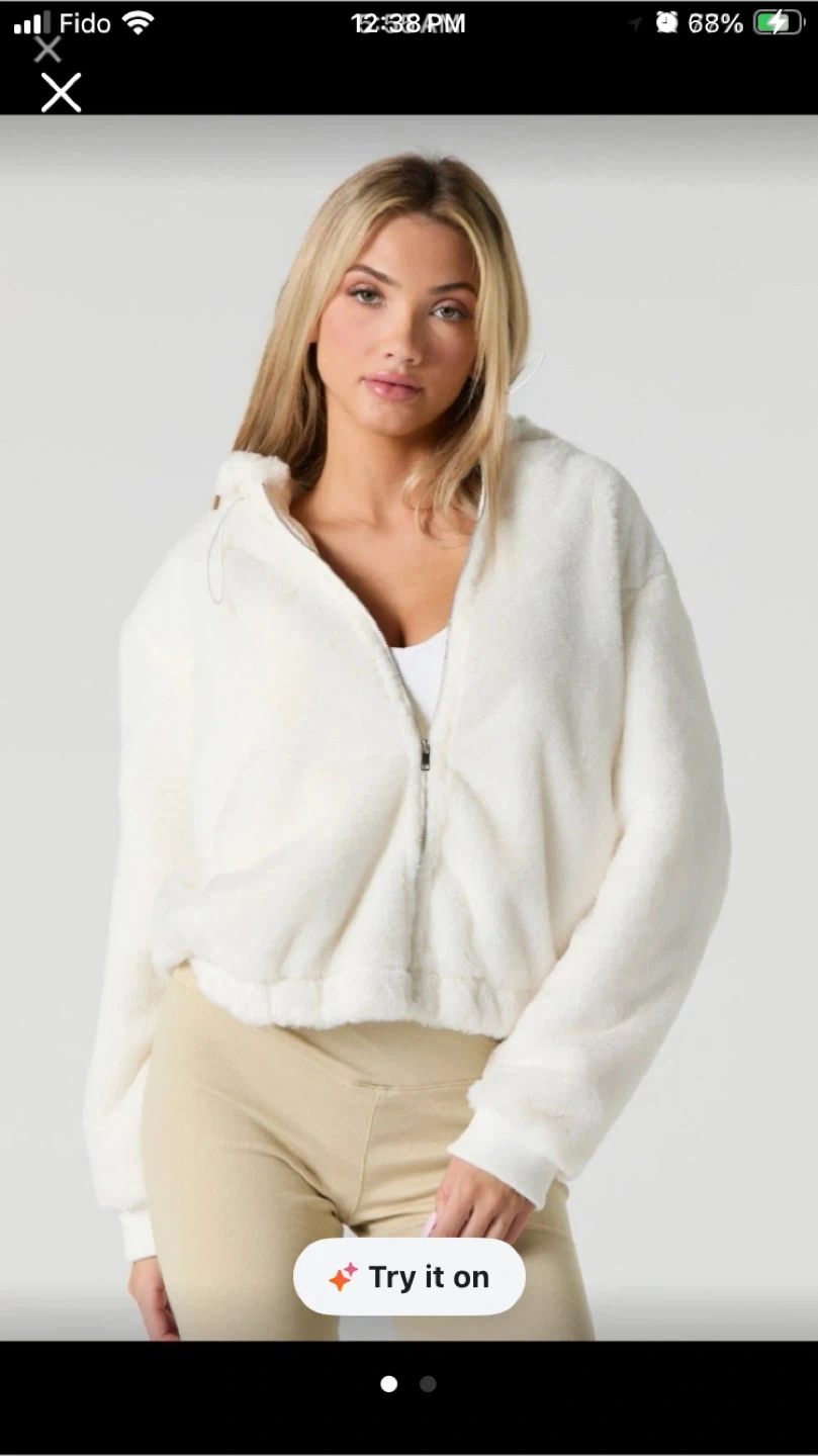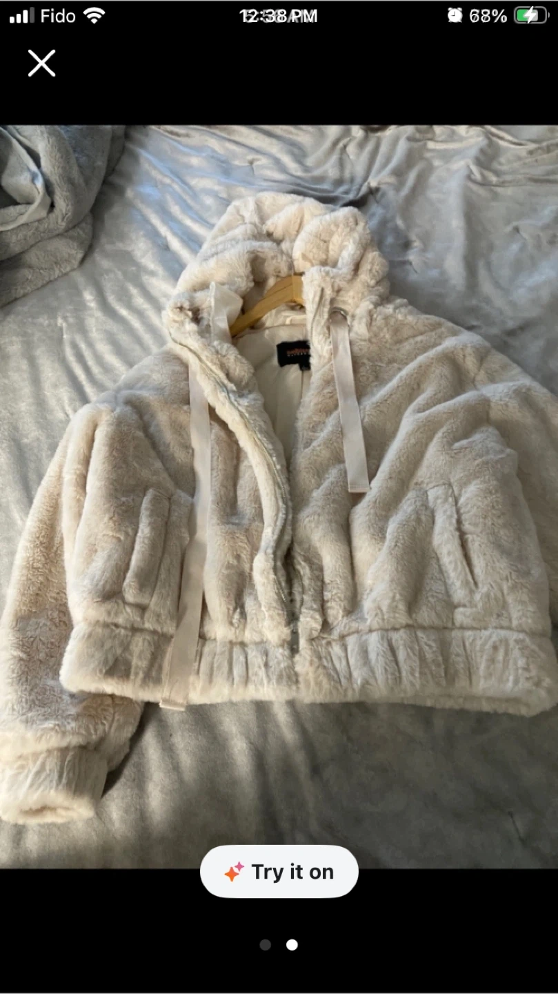 Cozy faux fur teddy zip-up hoodie. It's a cream colour and features a drawstring hood. Perfect for chilly days!never worn πΌ