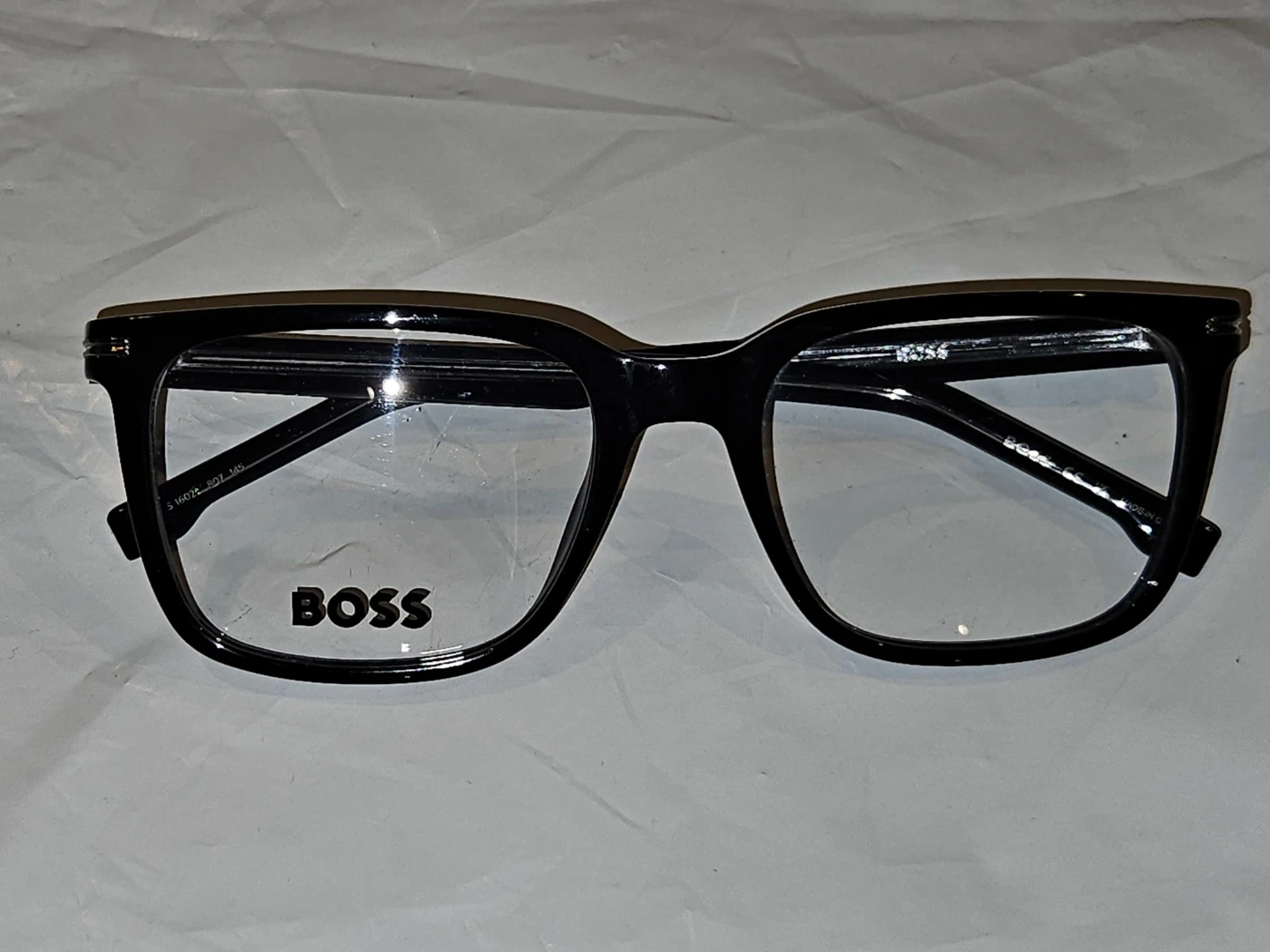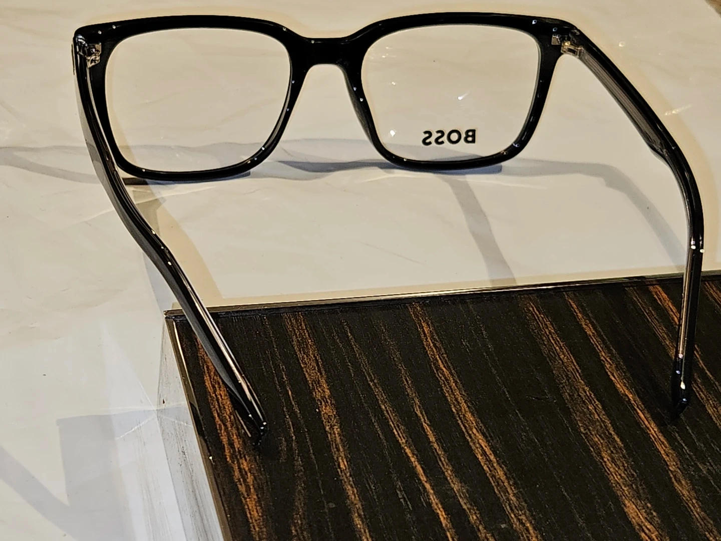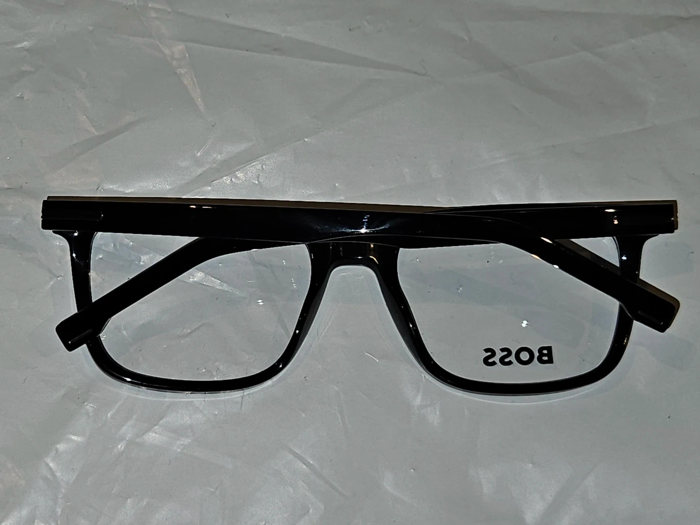 These are black BOSS eyeglasses. They feature a rectangular frame design. It's a stylish choice for everyday wear designed to perform any type of Prescription lenses.