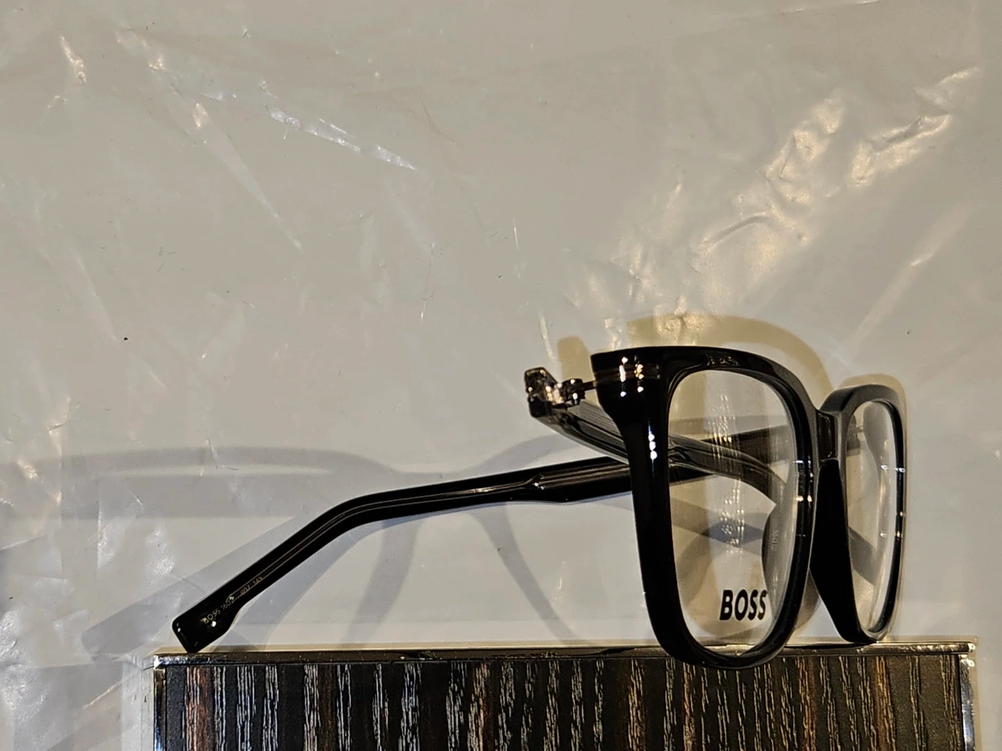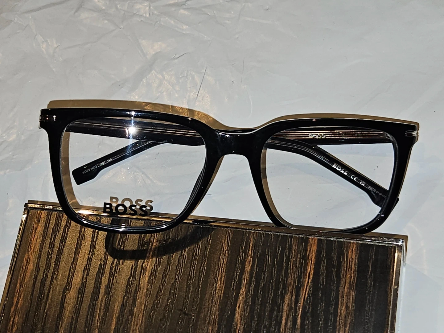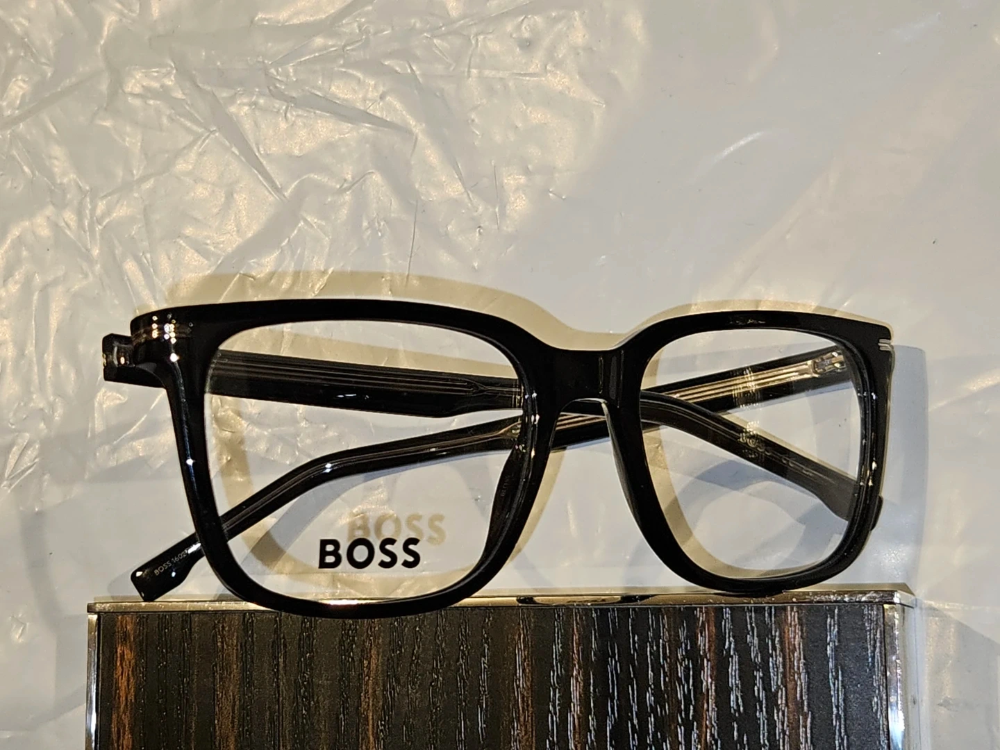 These are black BOSS eyeglasses. They feature a rectangular frame design. It's a stylish choice for everyday wear designed to perform any type of Prescription lenses.