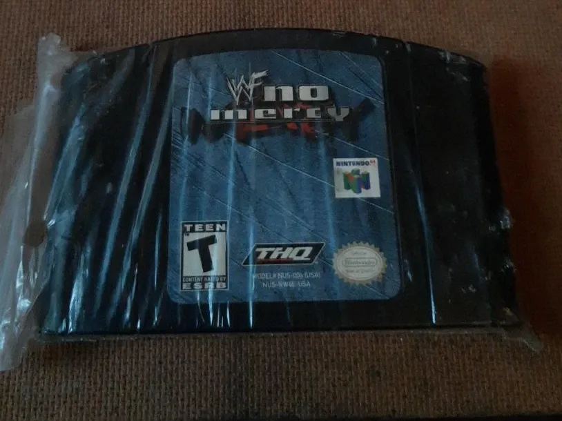 WWF No Mercy video game for the Nintendo 64. This is a classic wrestling game for the N64 console. It's rated T for Teen by ESRB. This specific version in its current condition has significant value.