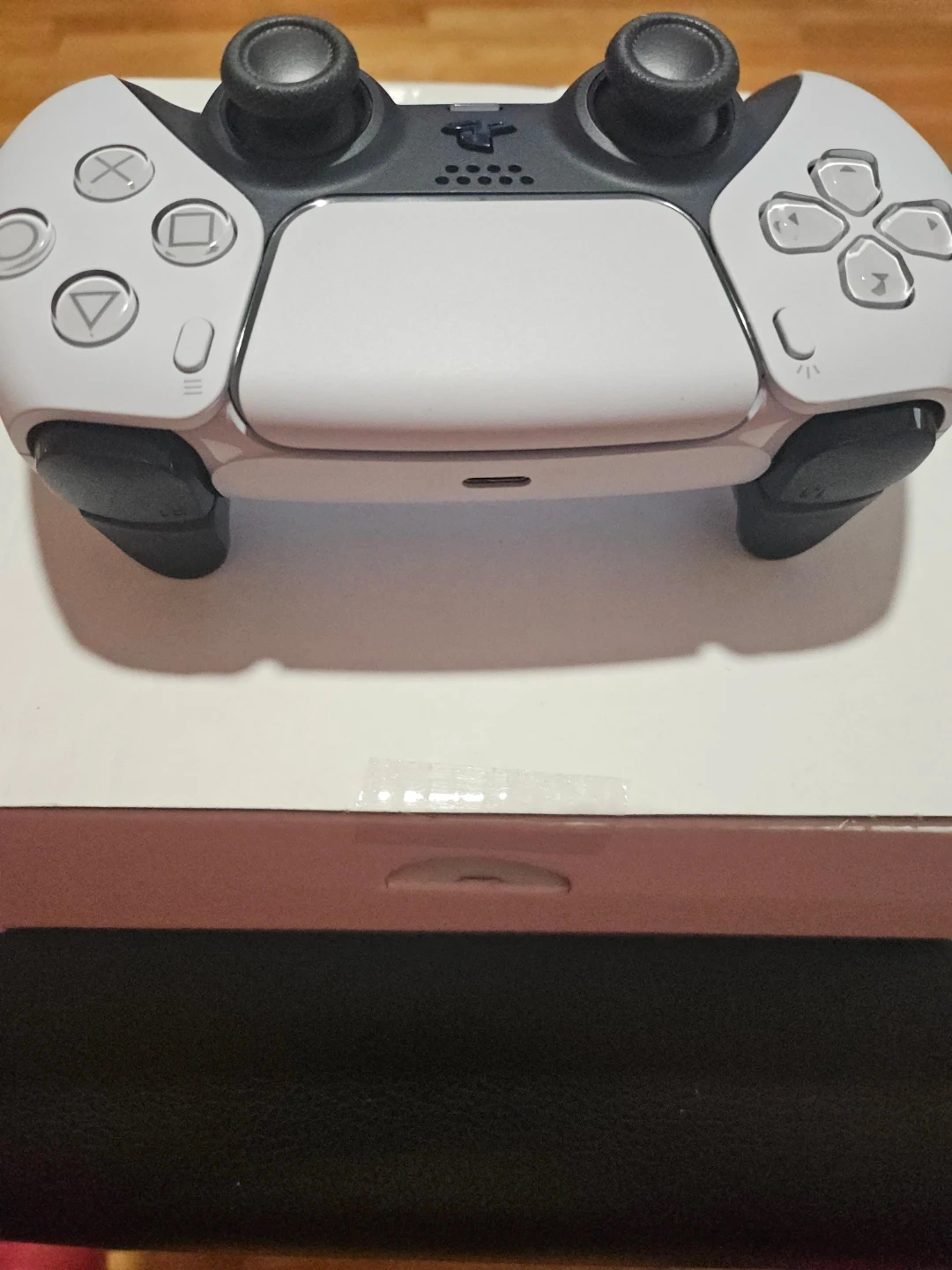 This is a white Sony DualSense wireless controller. It's compatible with PlayStation 5. Model CFI-ZCT1W.