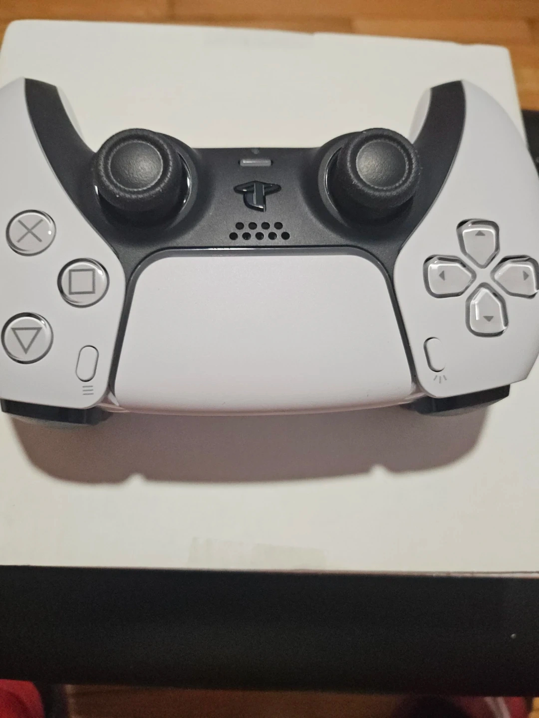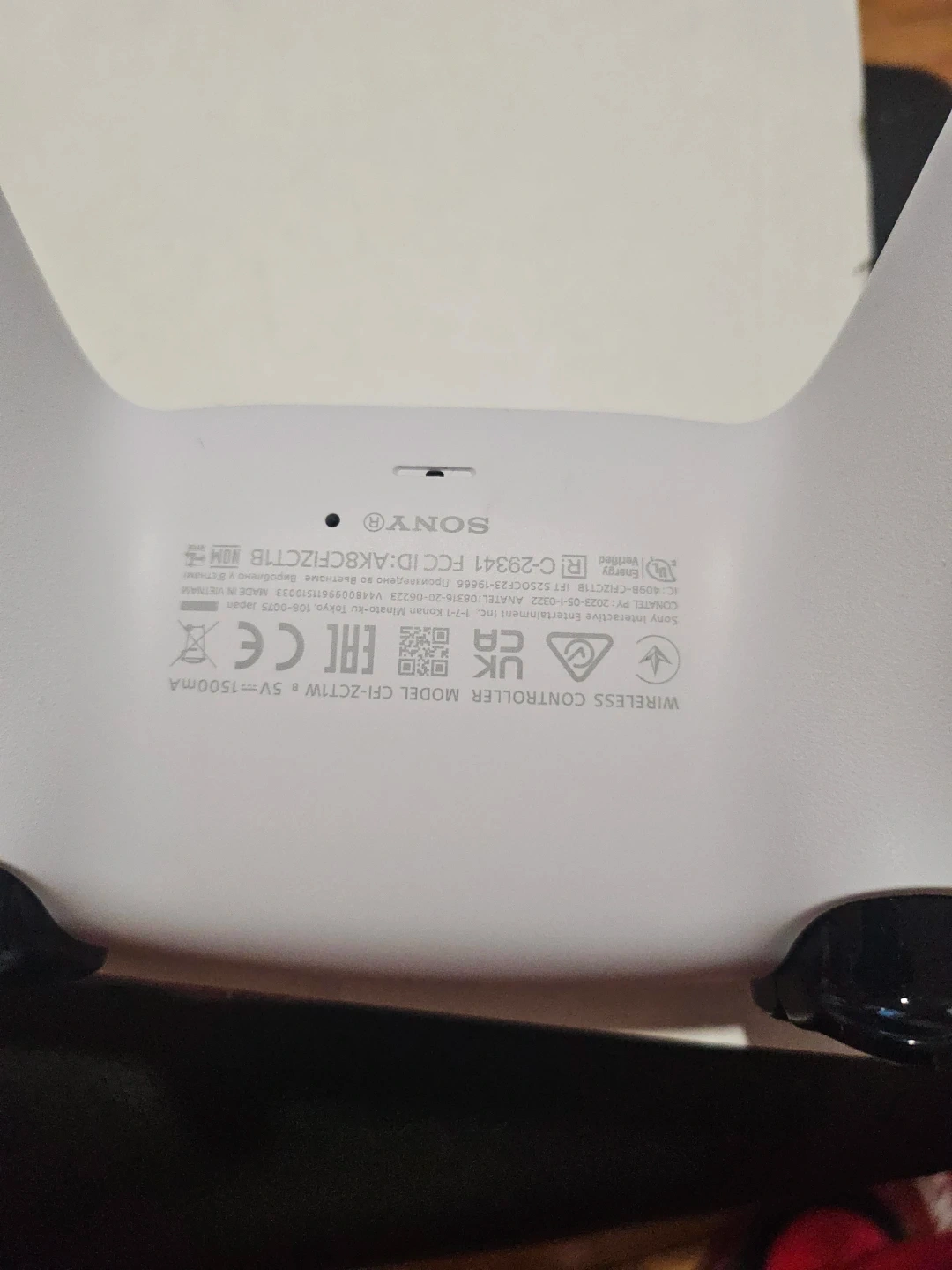 This is a white Sony DualSense wireless controller. It's compatible with PlayStation 5. Model CFI-ZCT1W.