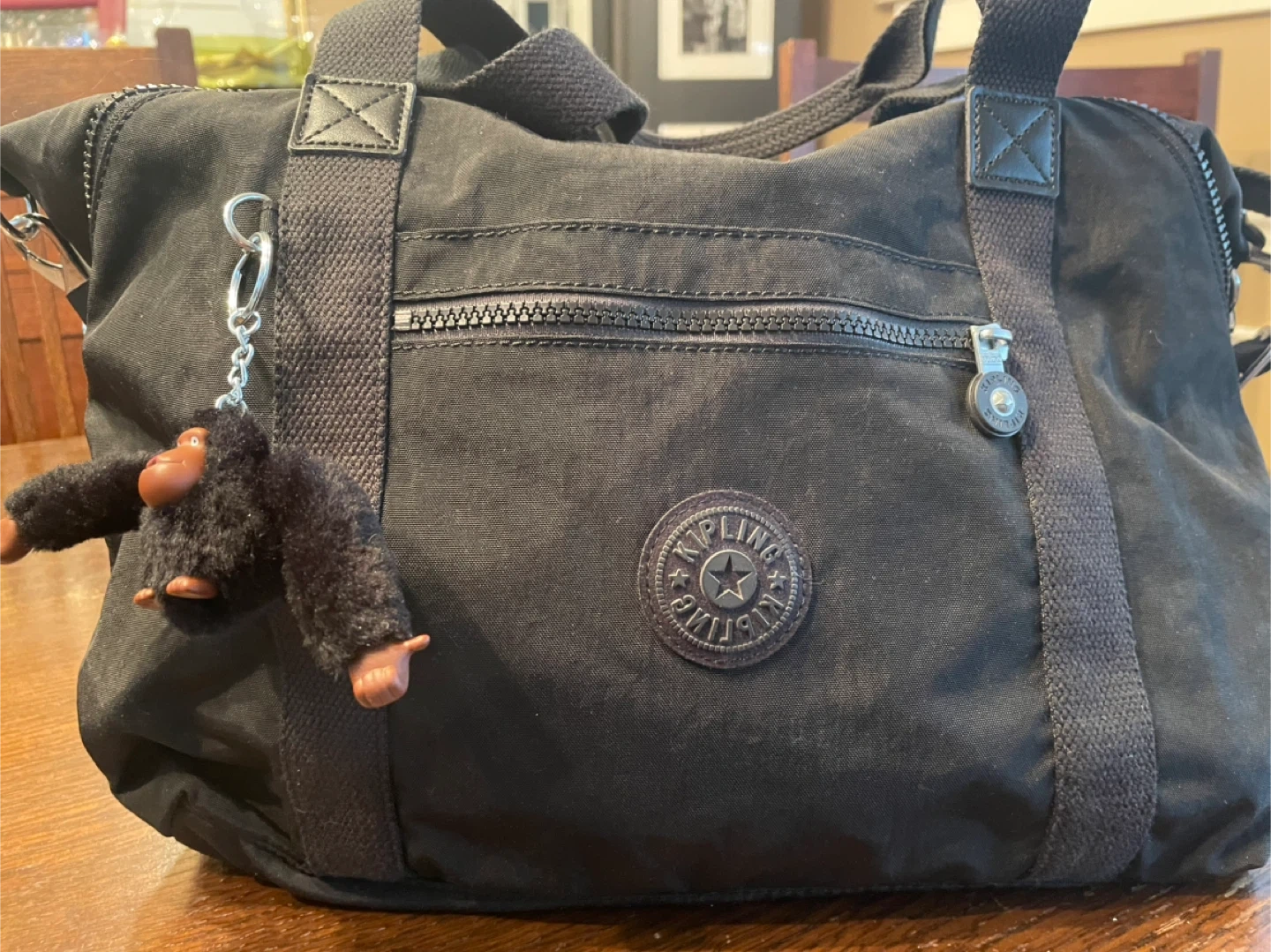 Kipling Black Duffle Bag with Monkey Keychain