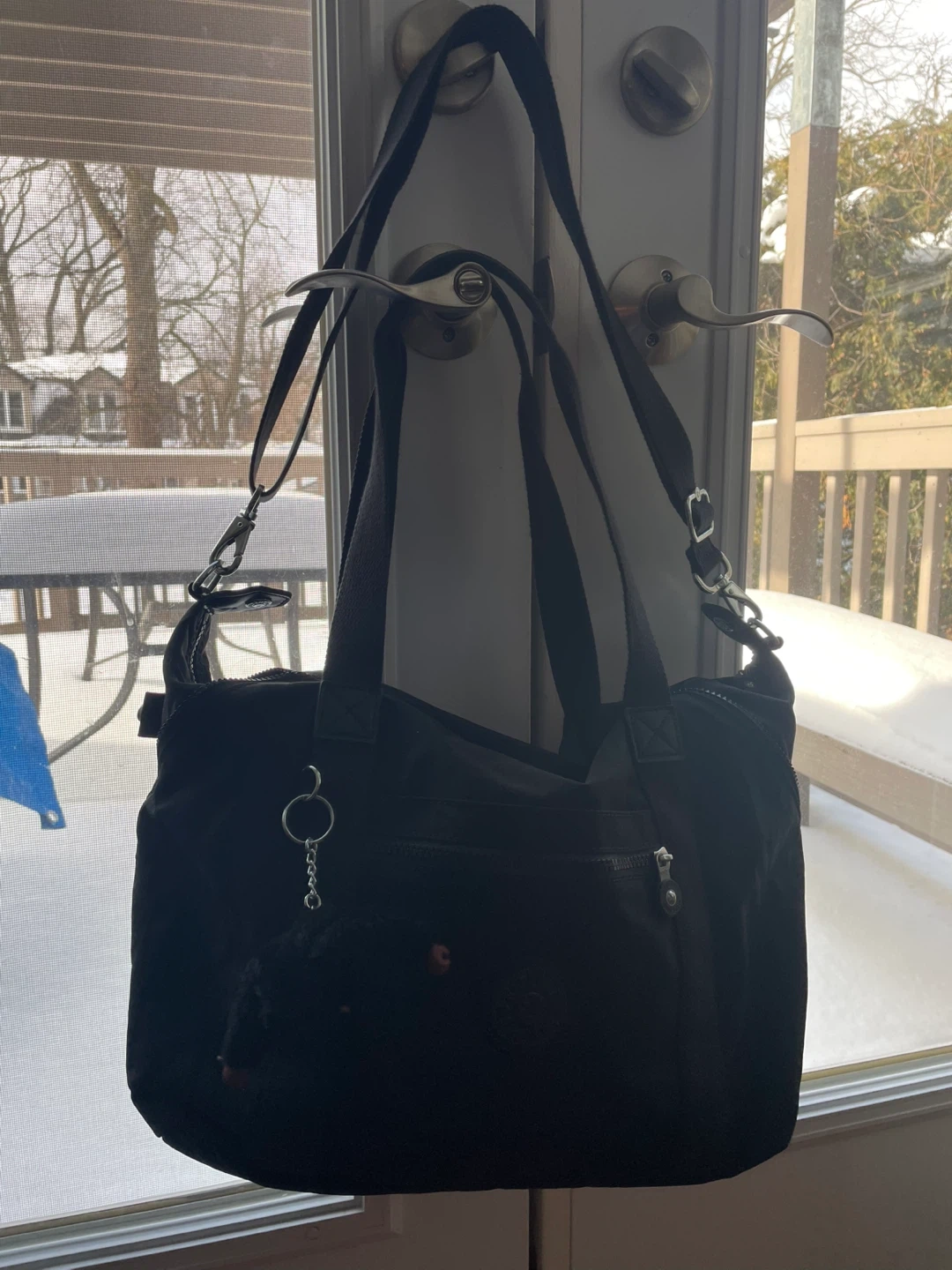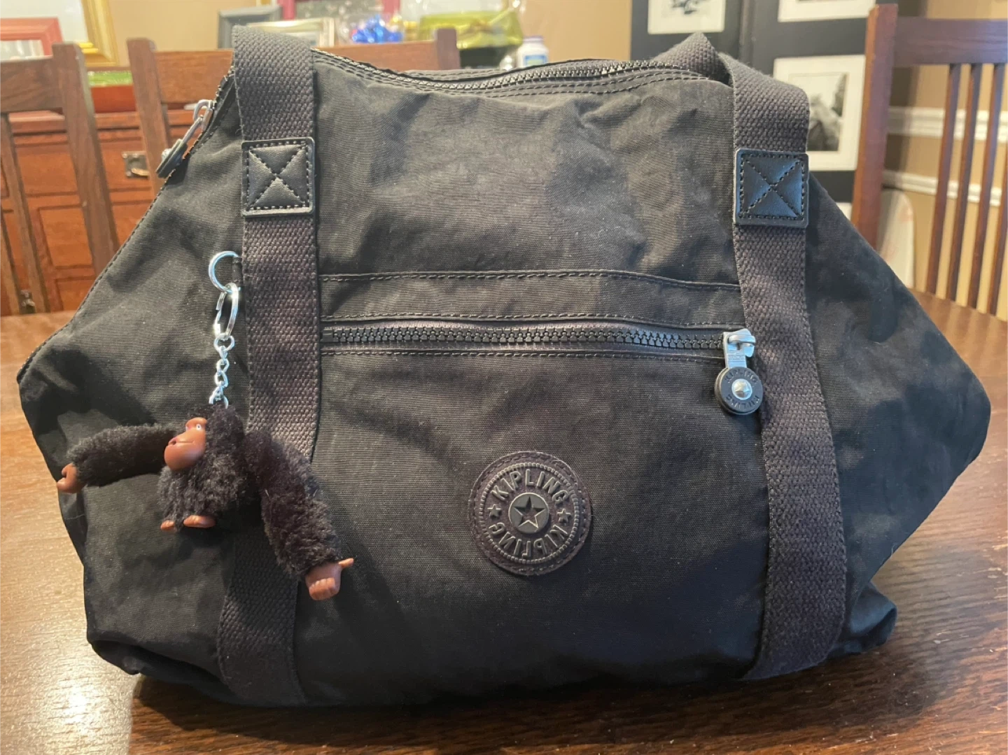 Kipling Black Duffle Bag with Monkey Keychain