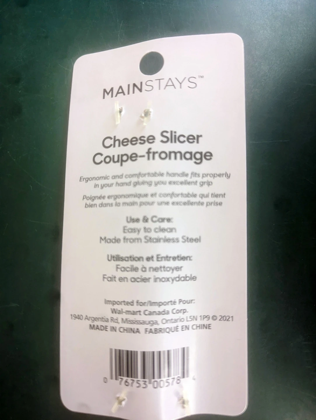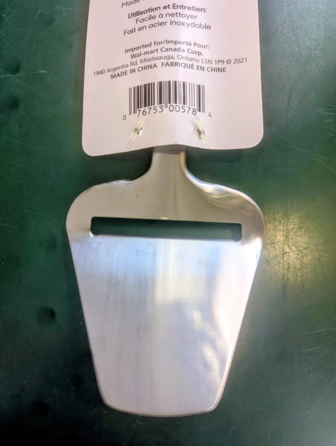 This Mainstays cheese slicer is made from stainless steel and is easy to clean.