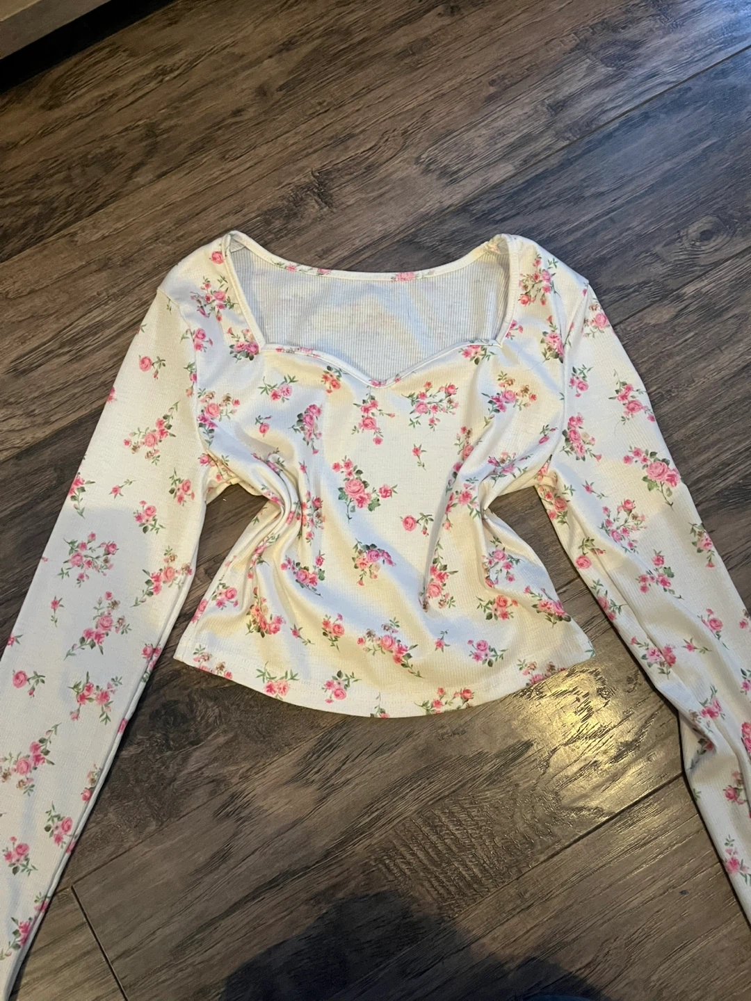 Buy & SellSHEIN Floral Long Sleeve TopSHEIN Floral Long Sleeve Top$5White long sleeve top with a pink floral print. Ribbed material with a sweetheart neckline. Size small. Comes from a smoke free and pet free homeBrandSHEINWHERE TO MEETCheck LocationView MapSELLERverifiedSofiaStouffville1379 reviews0 chats·0 favorites·7 viewsSEND CHAT TO SELLERHi Sofia! I’m interested in your listing.Hi Sofia! I’m interested in your listing.Get the Karrot app to chatSign In to chat
