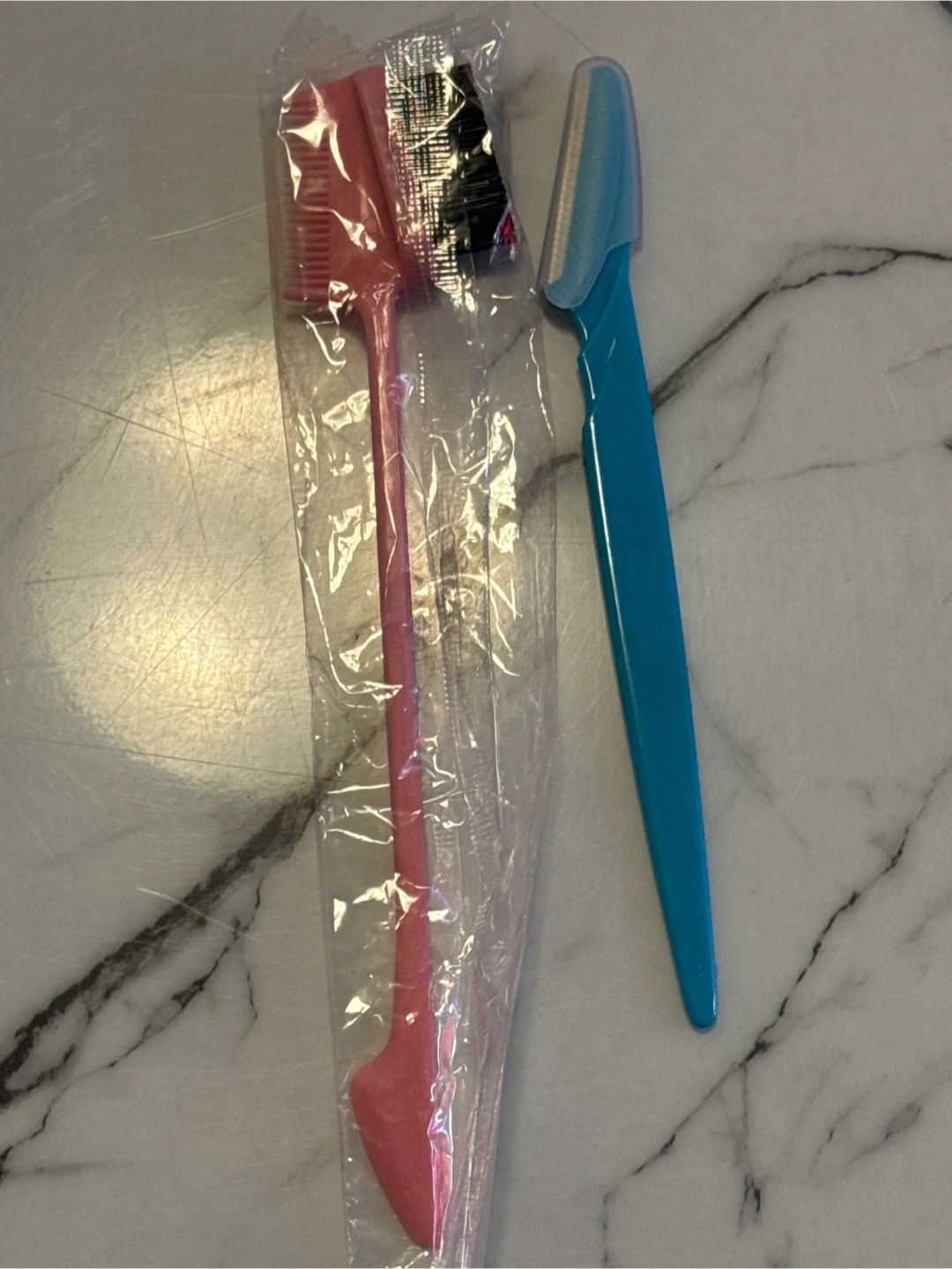 This set includes a precision eyebrow razor and a dual-sided comb and brush tool. The razor has a protective cap for safety. The comb helps shape brows while the brush grooms them.