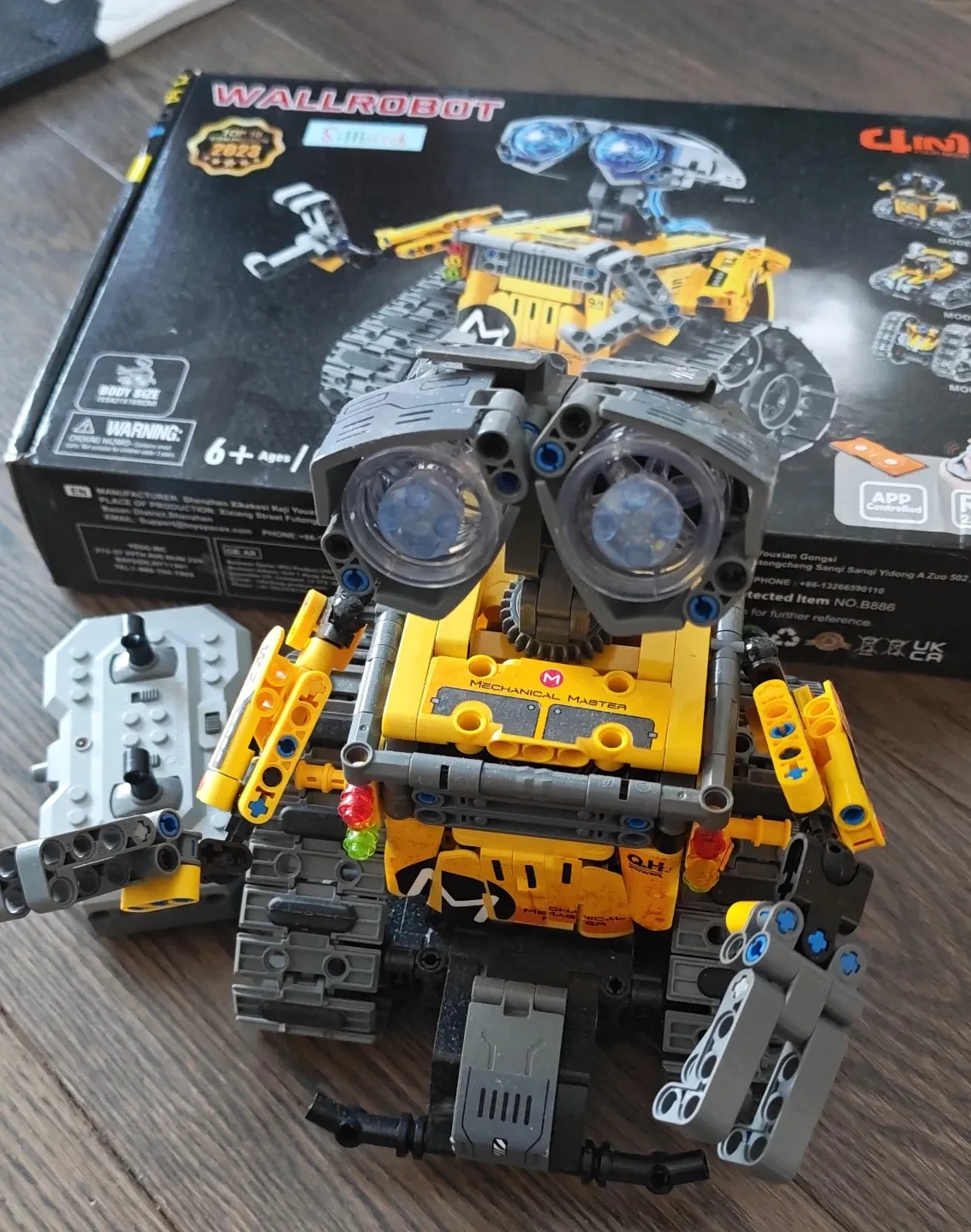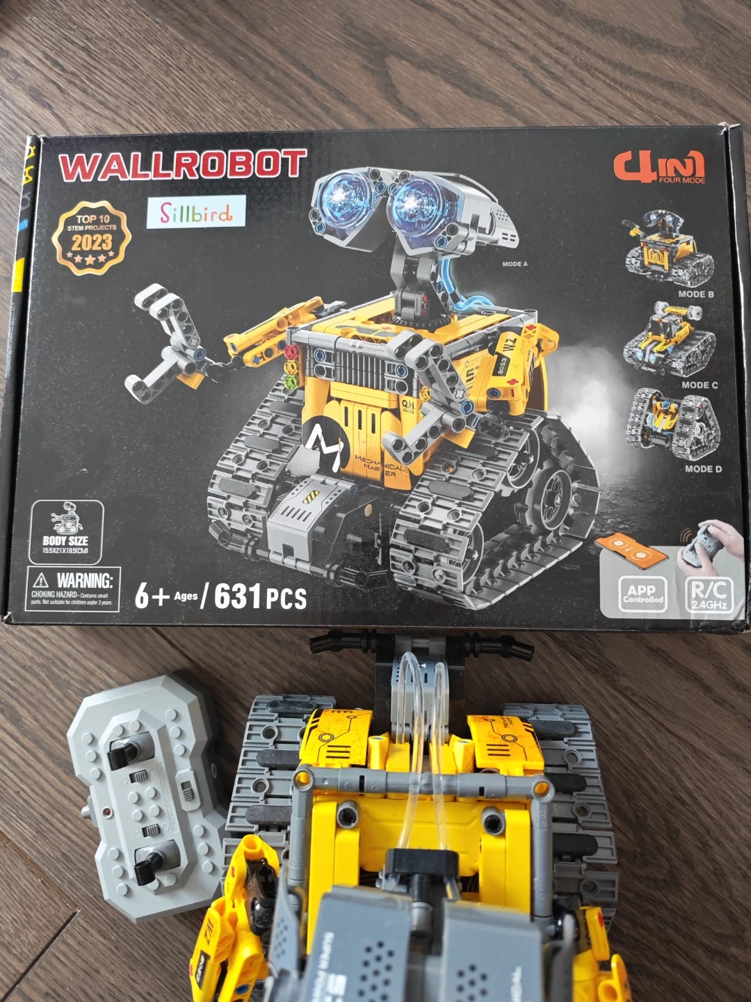Build your own Wallrobot with this 631-piece building block set. It includes a remote control for easy operation. Suitable for ages 6 and up. This set is great for aspiring builders!