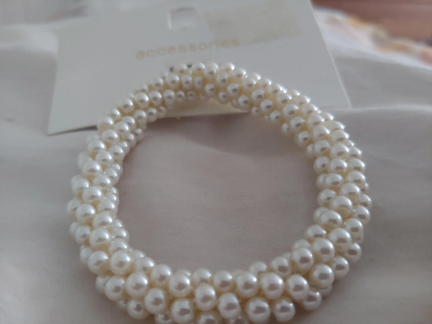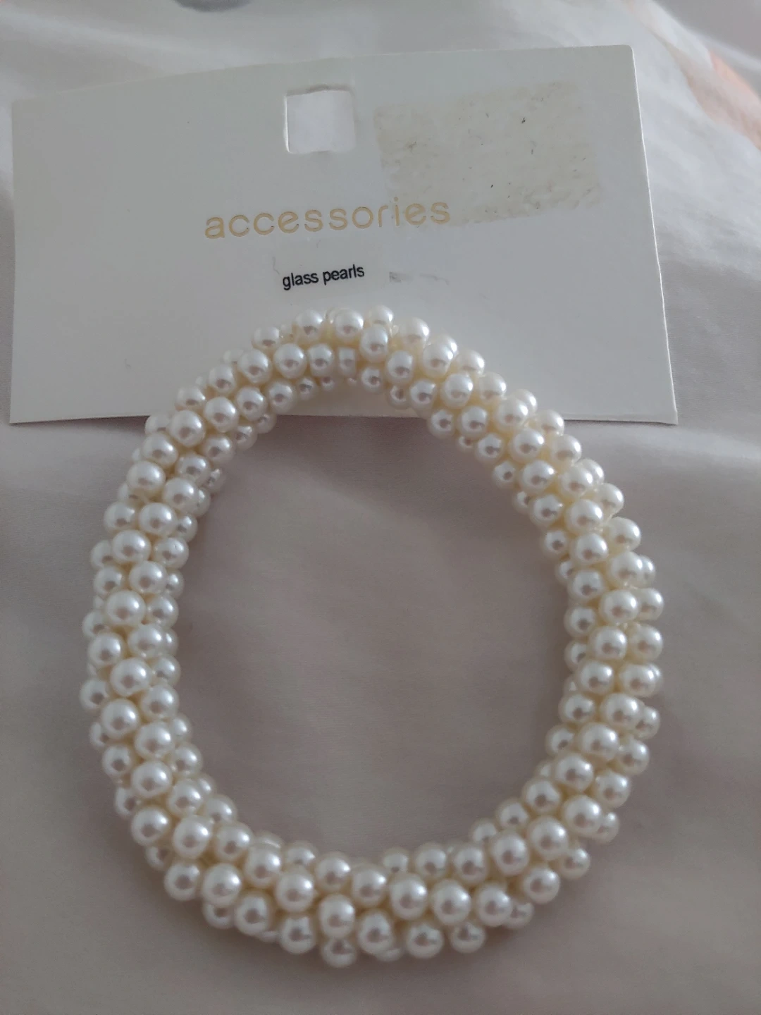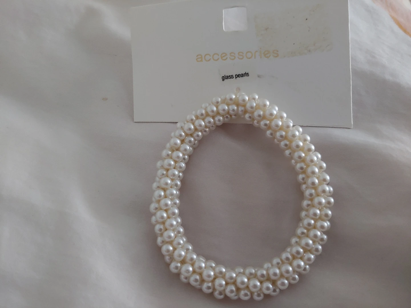 This bracelet is made with glass pearls. It's a lovely accessory for any occasion. This bracelet is stretchy. Brand New.