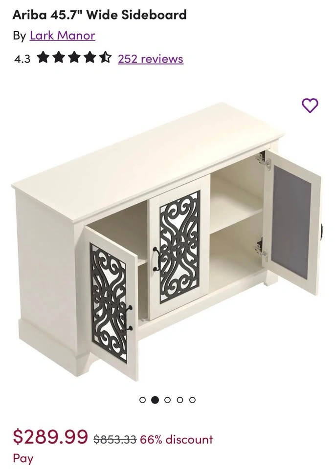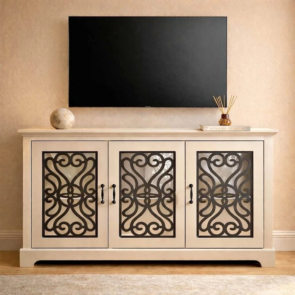 Brand new elegant white media stand / sideboard with decorative mirrored doors. A beautiful statement piece that works perfectly as a TV stand, media console, or accent sideboard. Timeless design that fits well in modern condos or homes. Dimensions (approx.): 45.7” W × 15.7” D × 29.3” H. Sturdy construction with spacious interior storage — great for media equipment, books, or décor. Pick up: Midtown Toronto or North York. Let me know if you're interested!