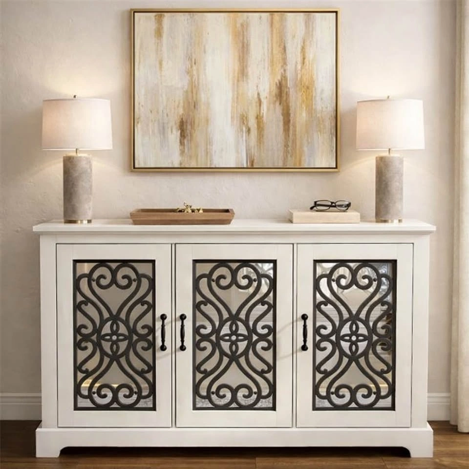 Elegant White Media Stand / Sideboard with Mirrored Doors – 45.7
