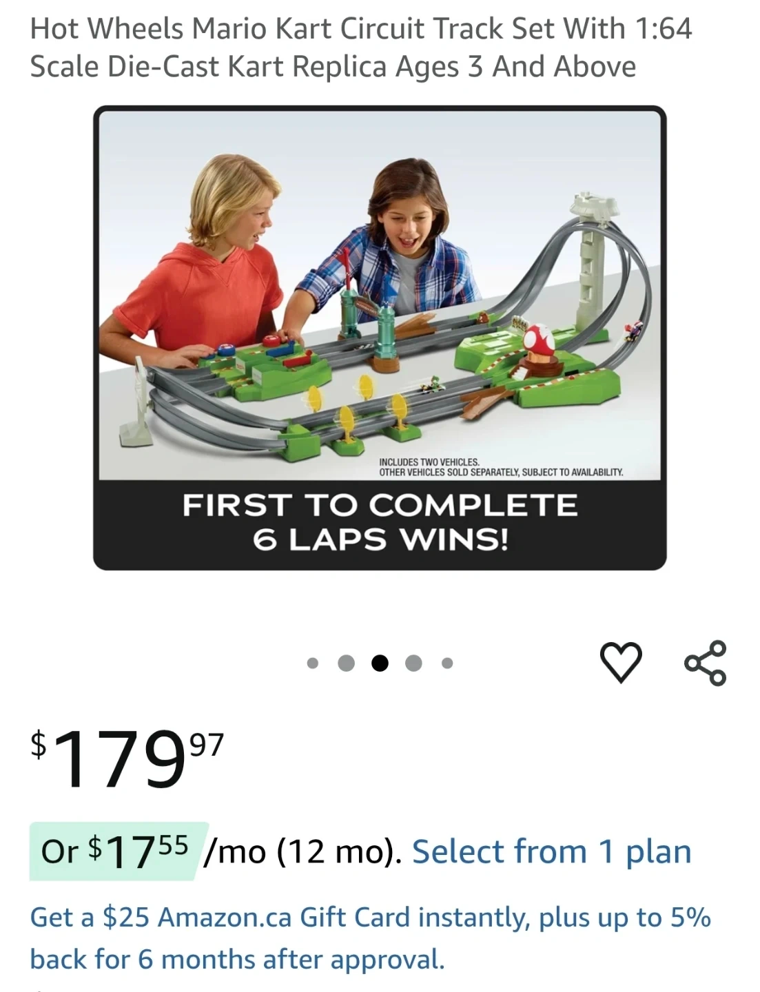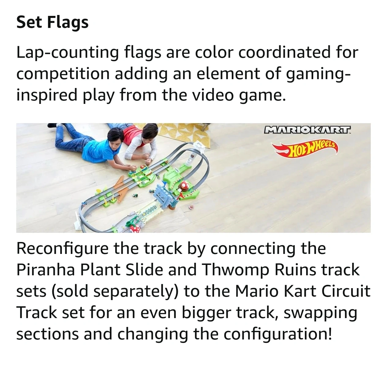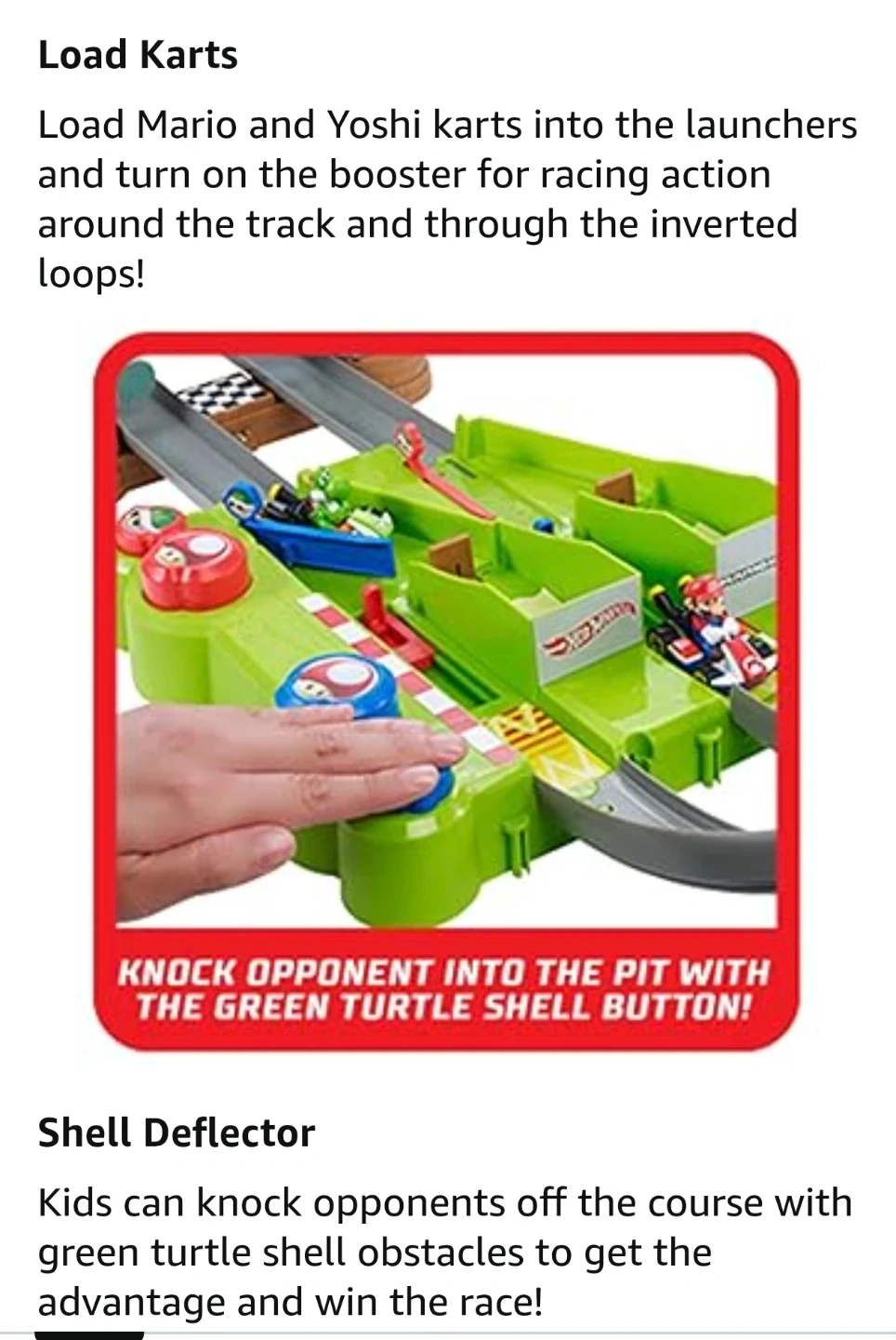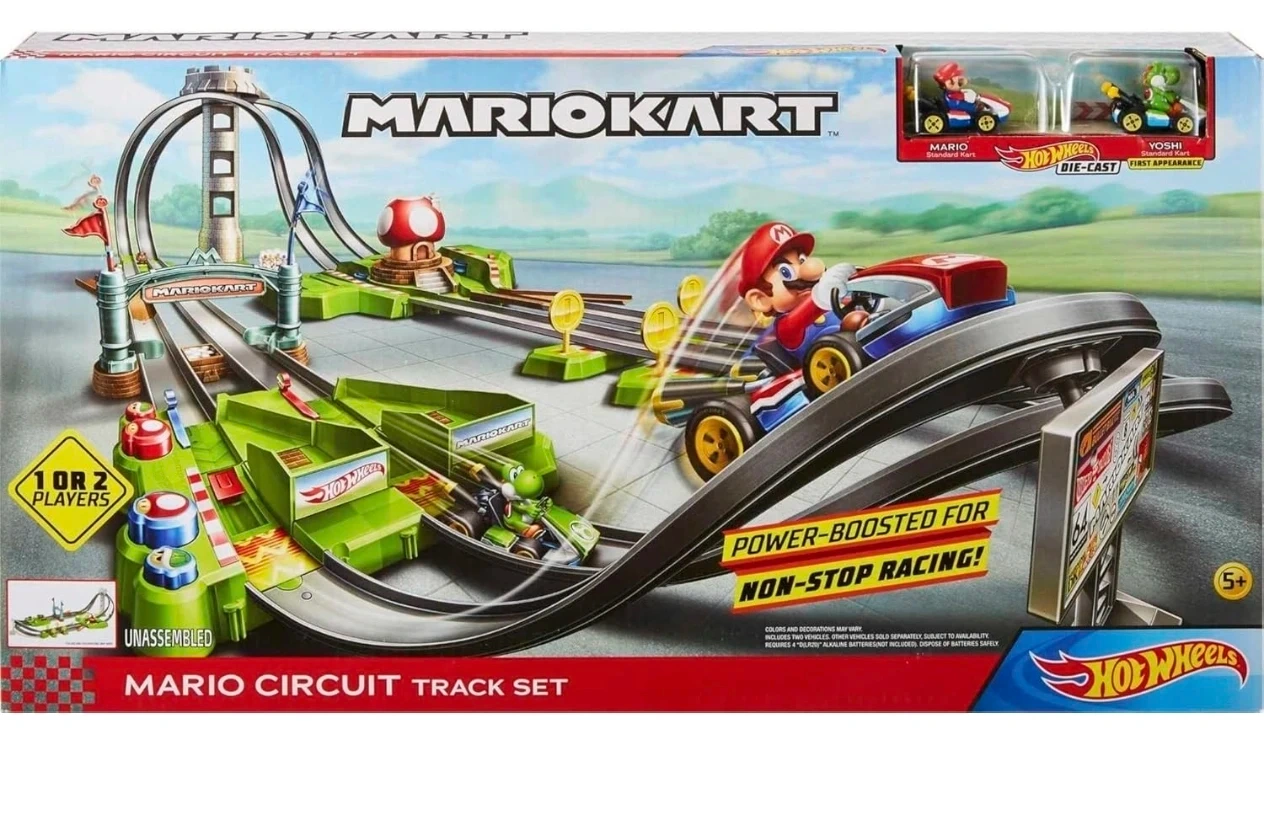 Hot Wheels brings the fast-paced action of Mario Kart to life with the ultimate Mario Kart Circuit Track, inspired by a course from the critically acclaimed video game. Race fan-favorites Mario Princess Peach and Yoshi -- as die-cast kart vehicles! listing $140 to $180 on Amazon.
