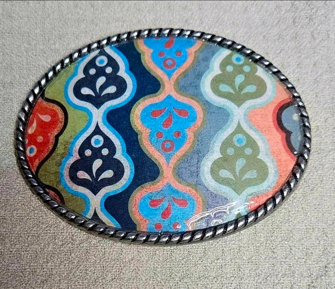 Oval Belt Buckle with Colorful Pattern