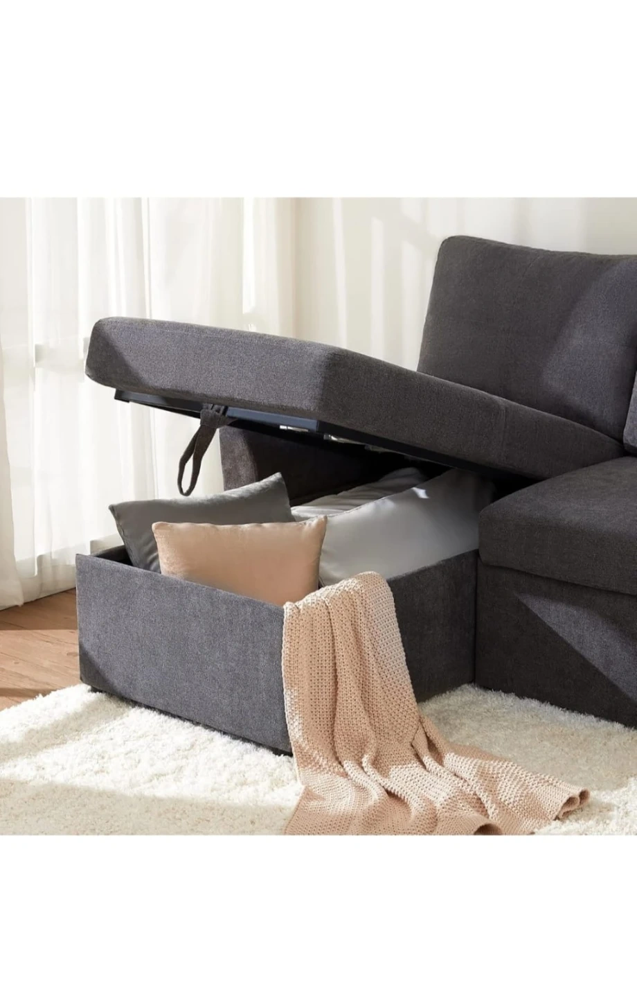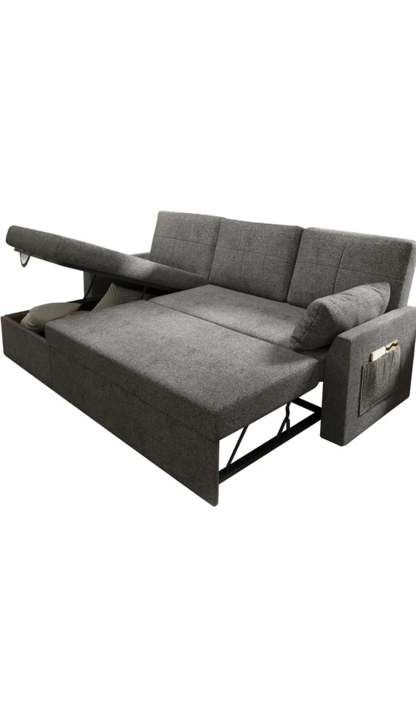Grey Fabric Sectional Sofa Bed with Storage