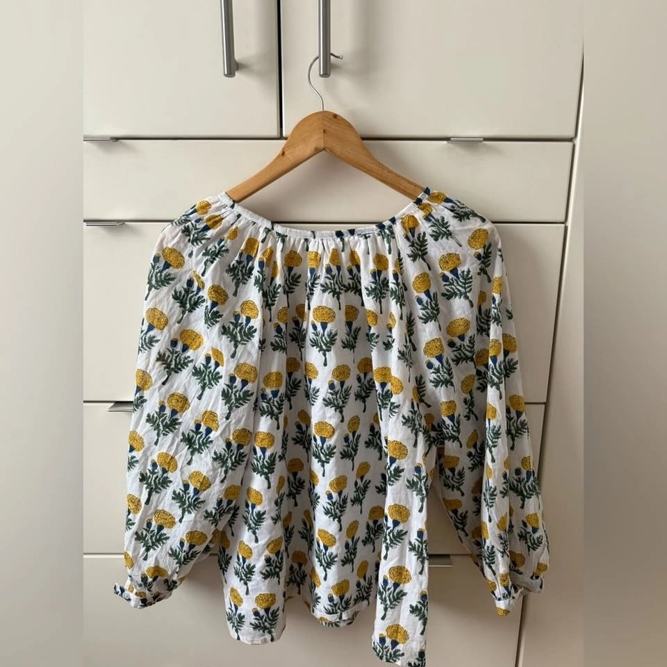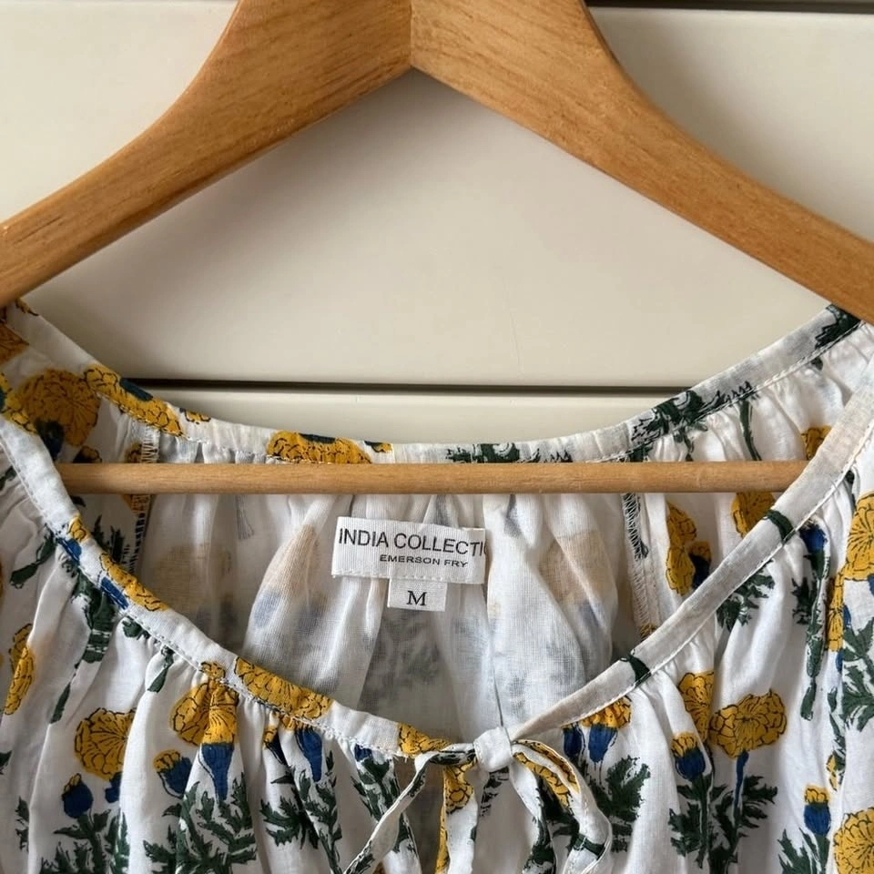 Beautiful Emerson Fry blouse from the India Collection. Made from lightweight organic cotton and fully lined. Features puff sleeves and a comfortable, relaxed fit. In excellent condition. Easy, versatile piece for everyday wear or warmer weather. Measurements (approx): Pit to pit: 23”, Length: 23”. No stains, rips, or piling. Smoke-free, pet-free home.