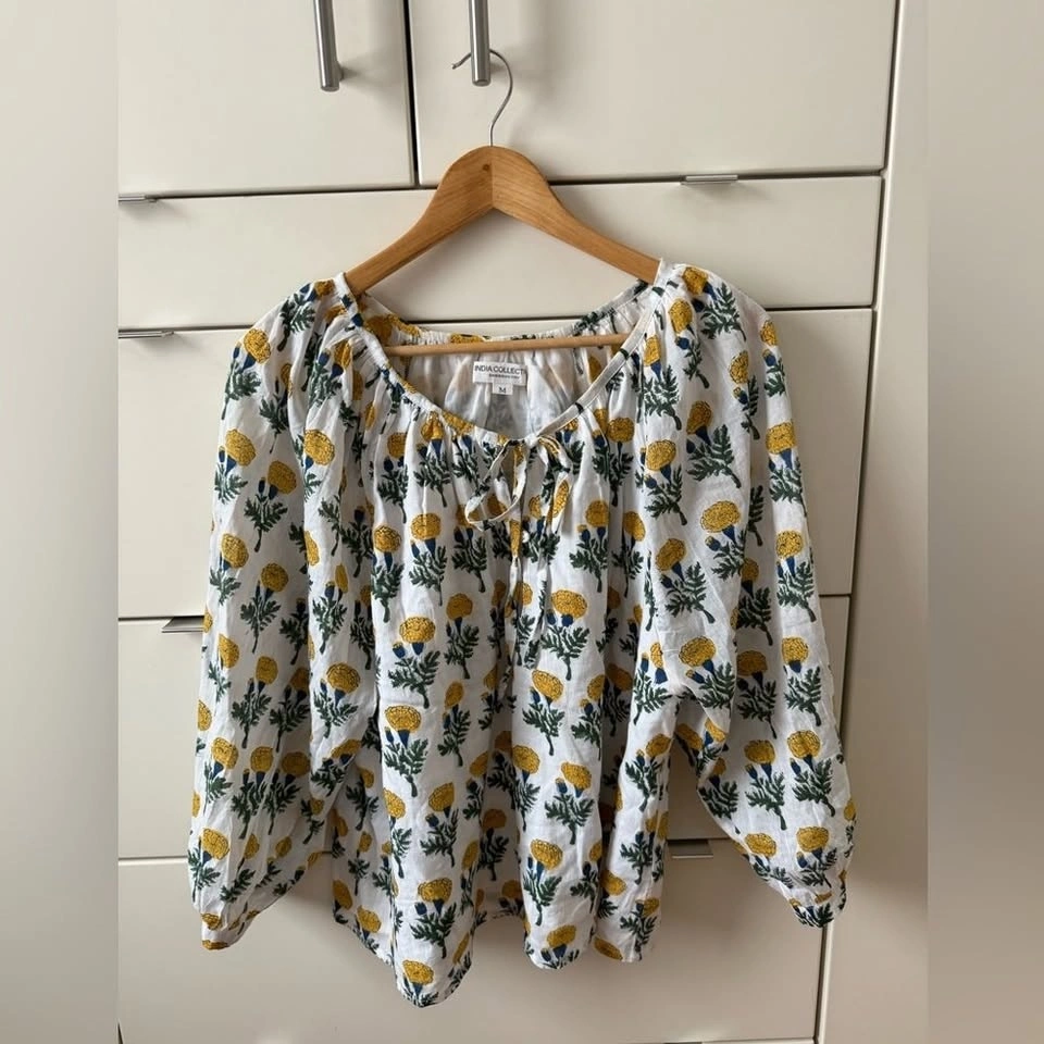Beautiful Emerson Fry blouse from the India Collection. Made from lightweight organic cotton and fully lined. Features puff sleeves and a comfortable, relaxed fit. In excellent condition. Easy, versatile piece for everyday wear or warmer weather. Measurements (approx): Pit to pit: 23”, Length: 23”. No stains, rips, or piling. Smoke-free, pet-free home.