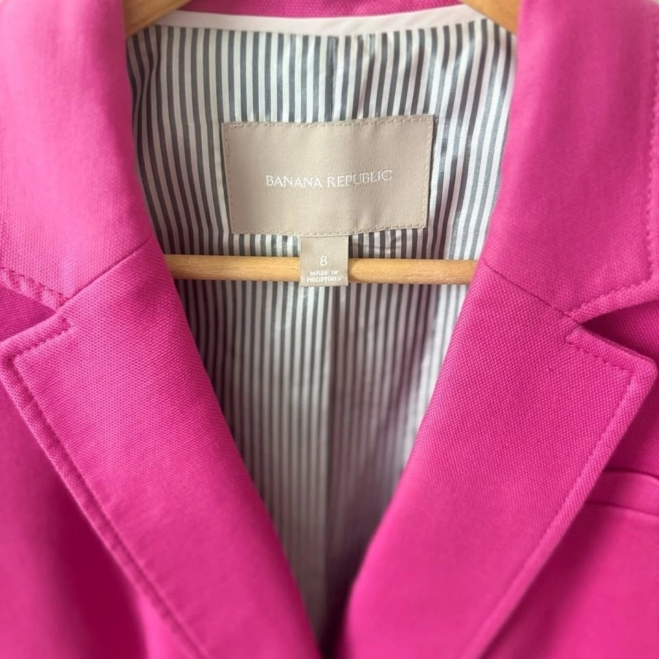 Stunning pink Banana Republic blazer in excellent condition. Tailored and polished with a modern silhouette—perfect for office wear, events, or dressing down with denim. Eye-catching color that elevates any outfit while still being versatile.