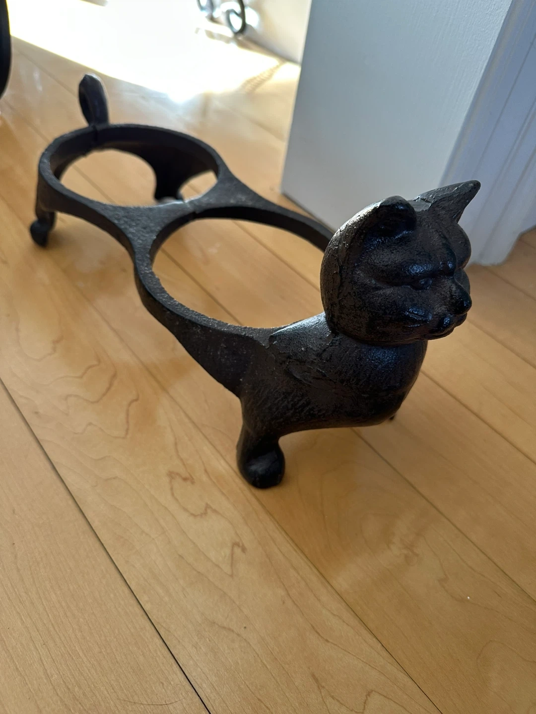 Cast Iron Cat Dish Food & Water Dish Feeder Decorative Cat Planter It measures approximately 5 inches in diameter for each opening. This piece adds a charming touch to any home!