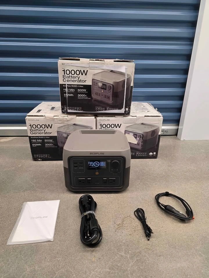 Brand-new condition, only opened to verify contents. Comes complete with all original accessories. Specs: 512Wh LFP battery (3000+ cycles), 500W output (1000W X-Boost), recharges 0–100% in 1 hour. Features 4 AC outlets, USB-C, USB-A, and DC ports. Lightweight & portable at 13.3 lbs. Feel free to message if you have any questions!