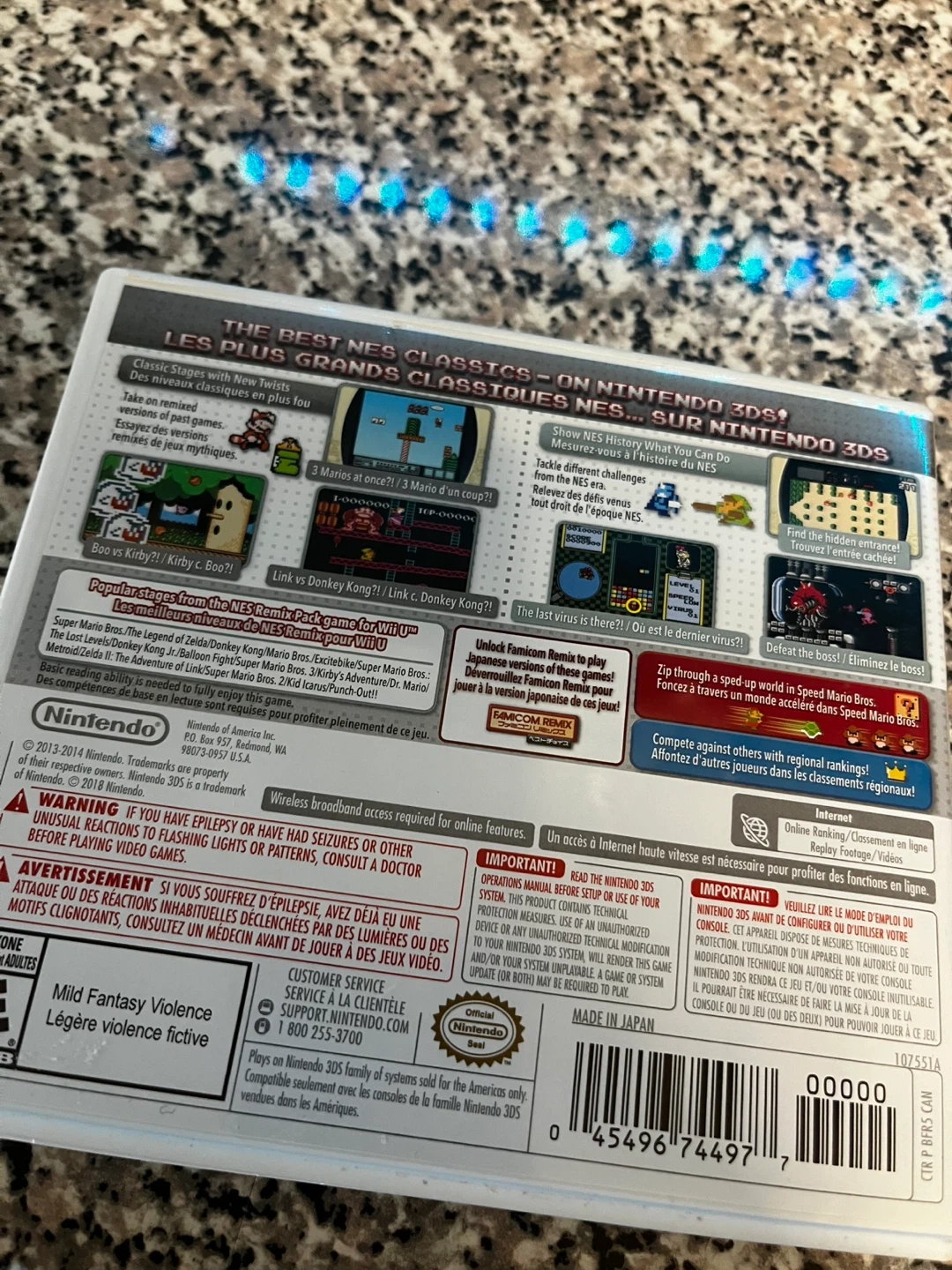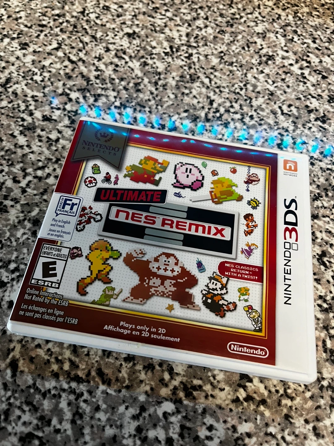 This is the Ultimate NES Remix game for Nintendo 3DS. It's part of the Nintendo Selects line. This game features classic NES challenges with a remix twist!