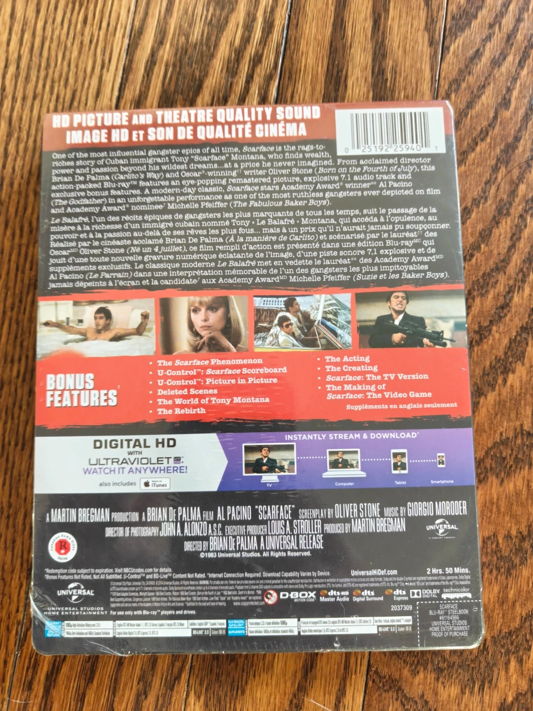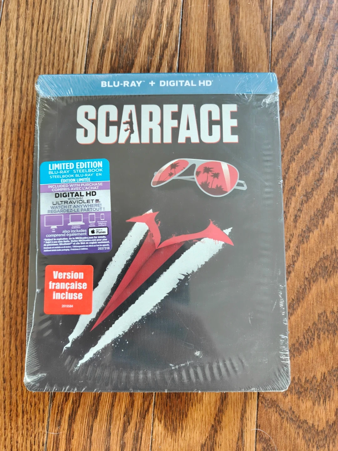 This is the Scarface Limited Edition Blu-Ray + Digital HD Steelbook. It includes Ultraviolet and iTunes digital copies. Comes in a collectible steelbook case.