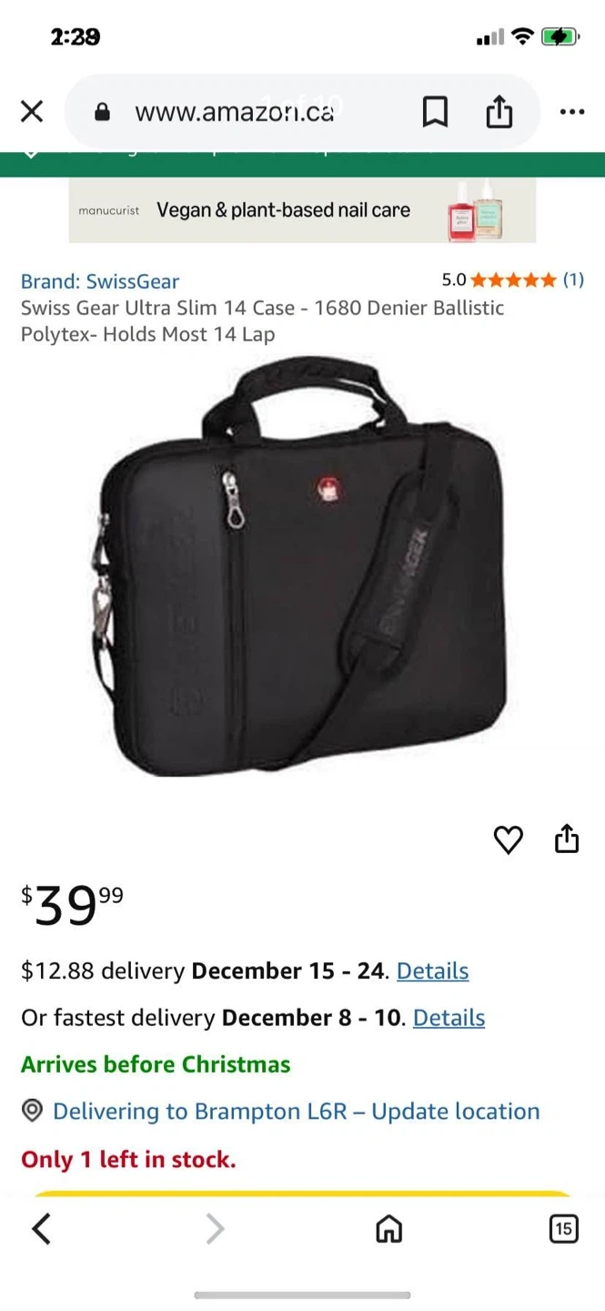 New Swiss Gear Ultra Slim 14" Laptop Bag