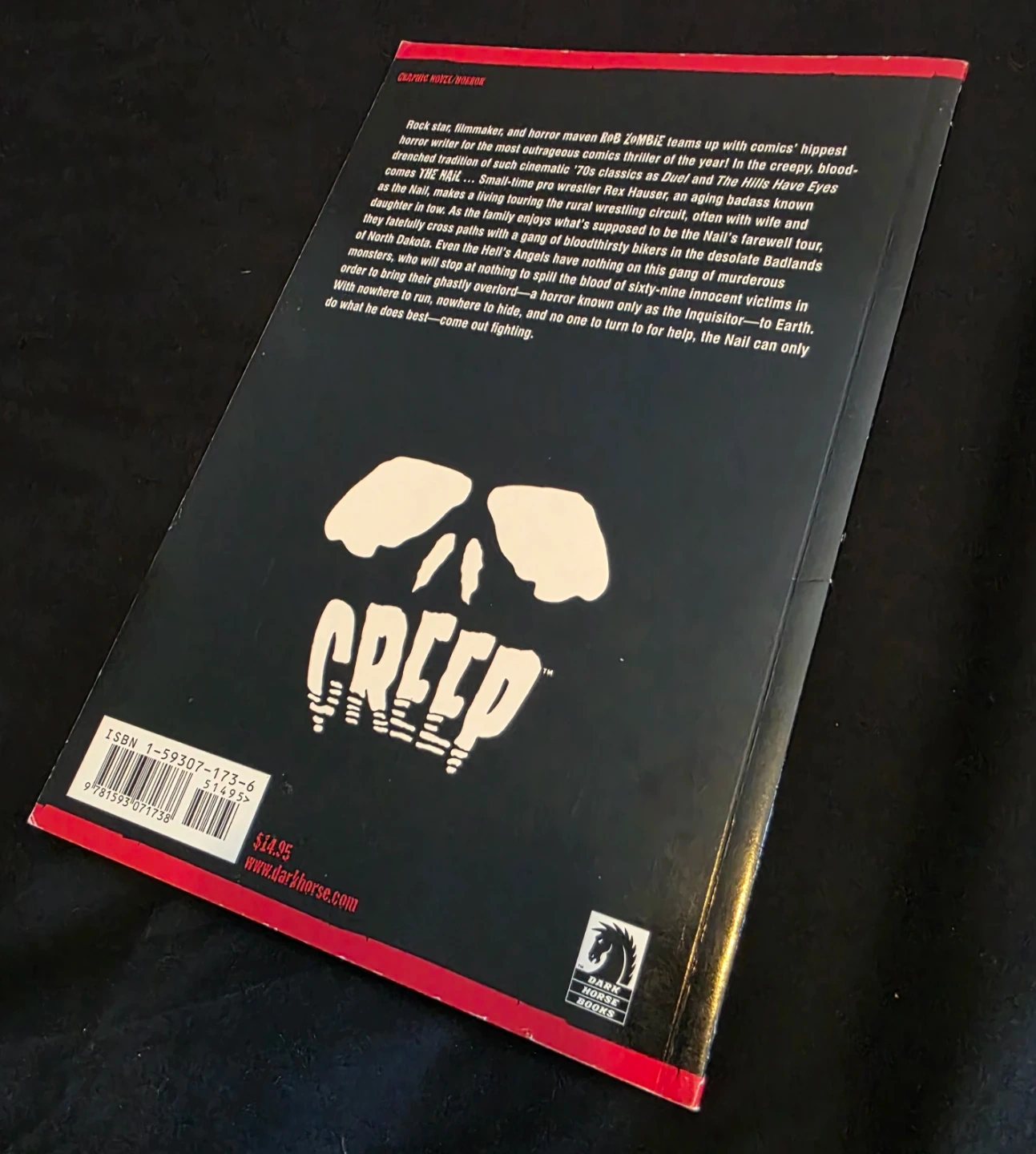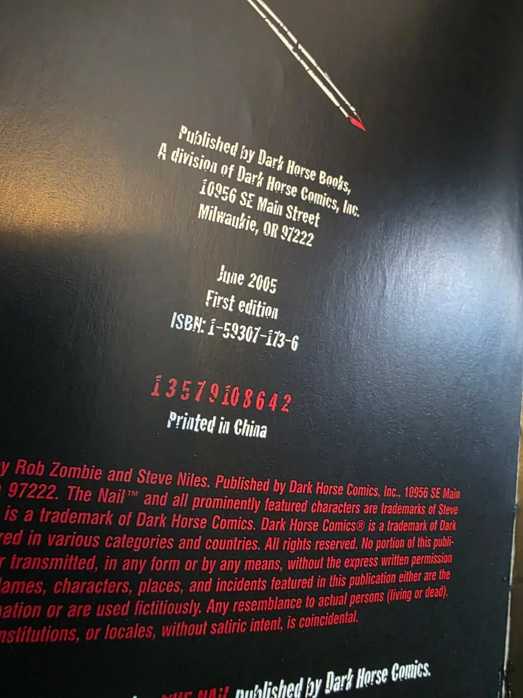 First edition graphic novel, The Nail, written by Rob Zombie and Steve Niles. It was published in June 2005 by Dark Horse Books. Slight inner front page lift from spine as shown in photos. Horror Genre.