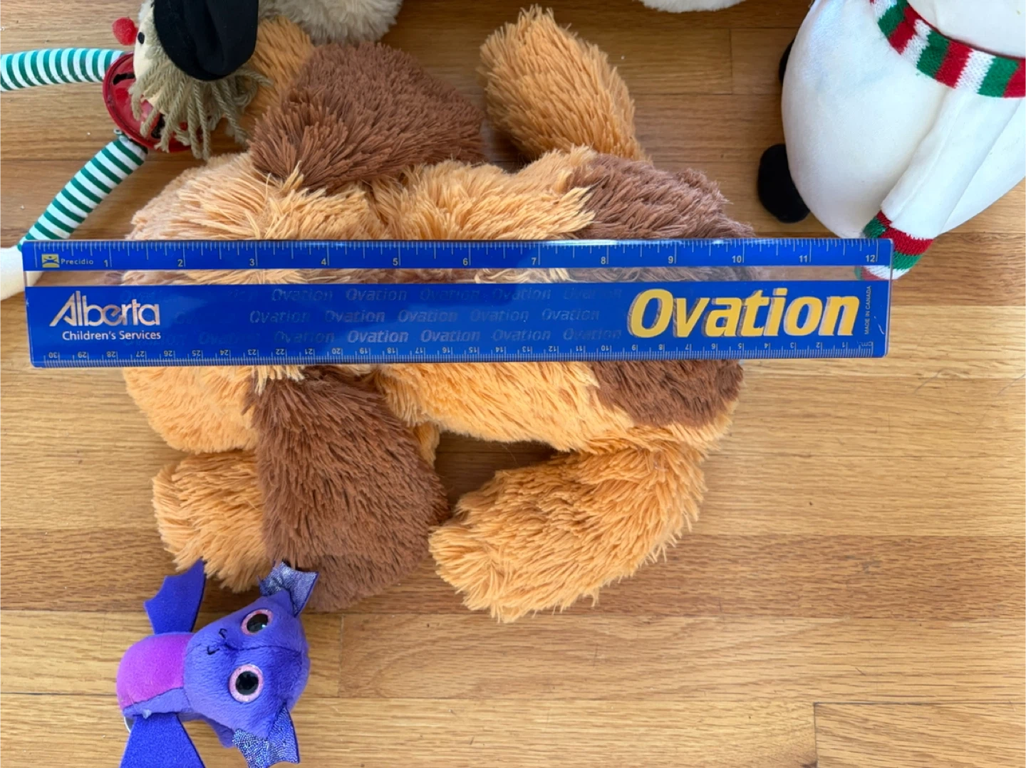 This is a collection of six plush toys from Ovation. Includes a dog, cat, snowman, penguin, and two smaller characters. Measurements vary by toy. 20$ for all . Pickup at Morley trail NW