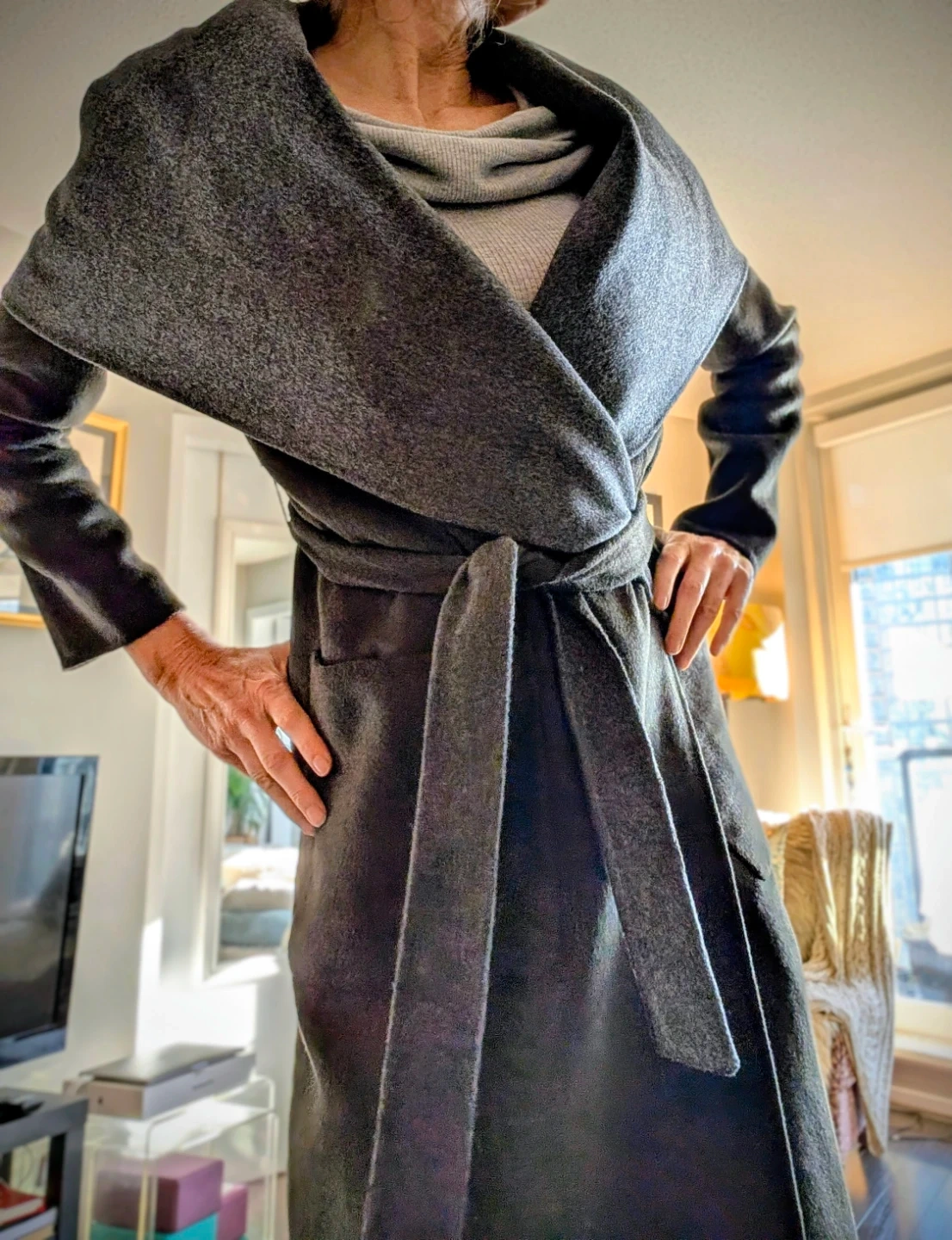 Reserved!š„BCBGMAXAZRIA Grey Belted Wrap Coat