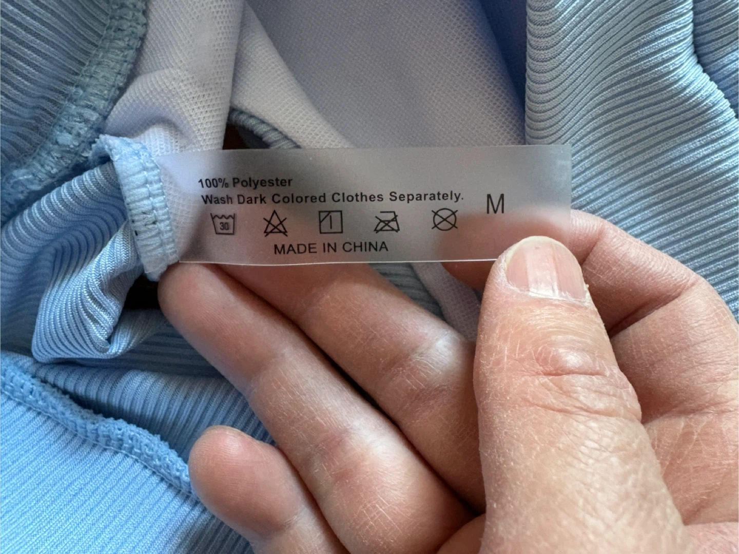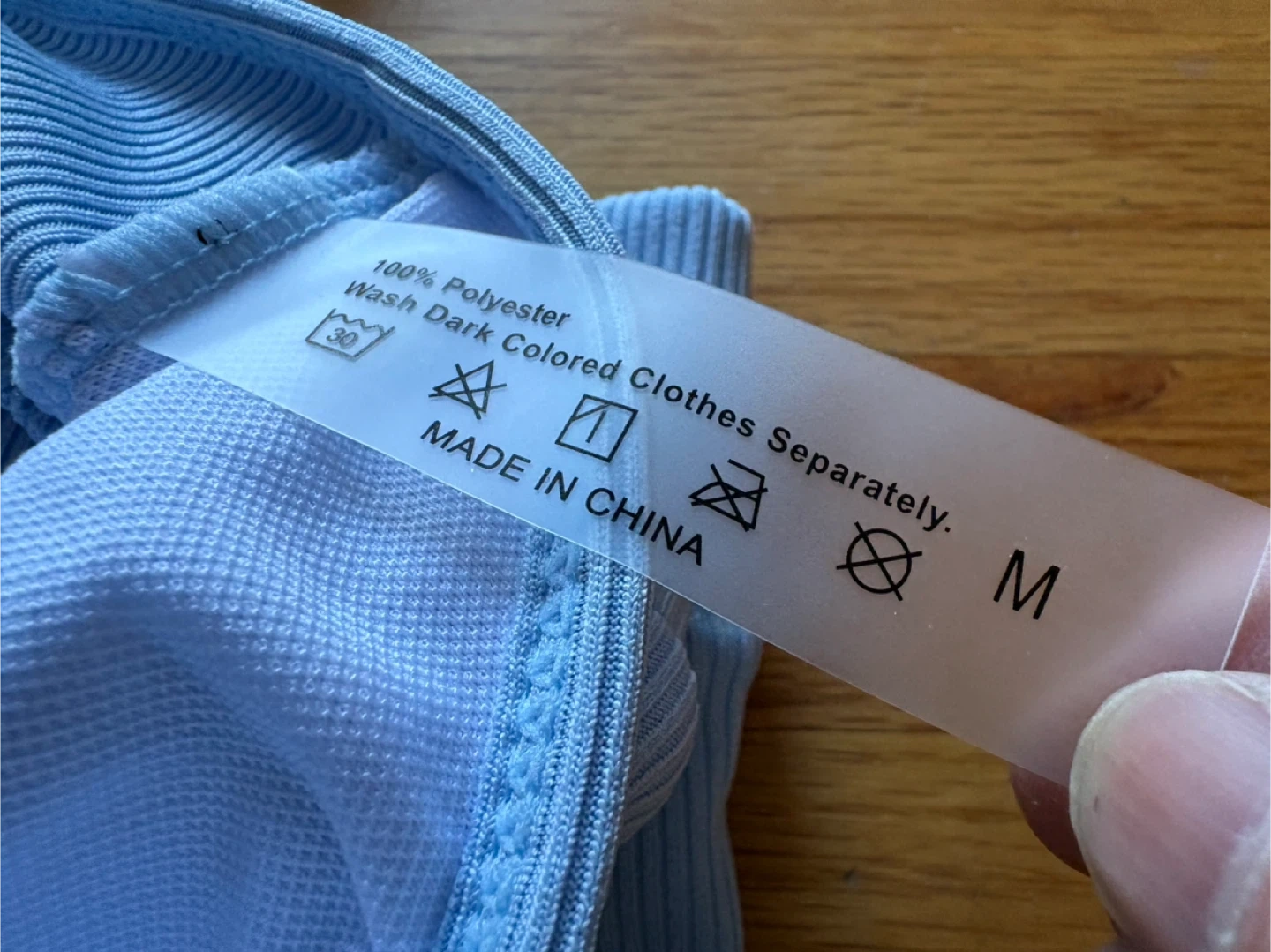 Two-piece light blue ribbed bikini set. Made from 100% polyester. This bikini is a size medium. Pickup at Morley trail NW