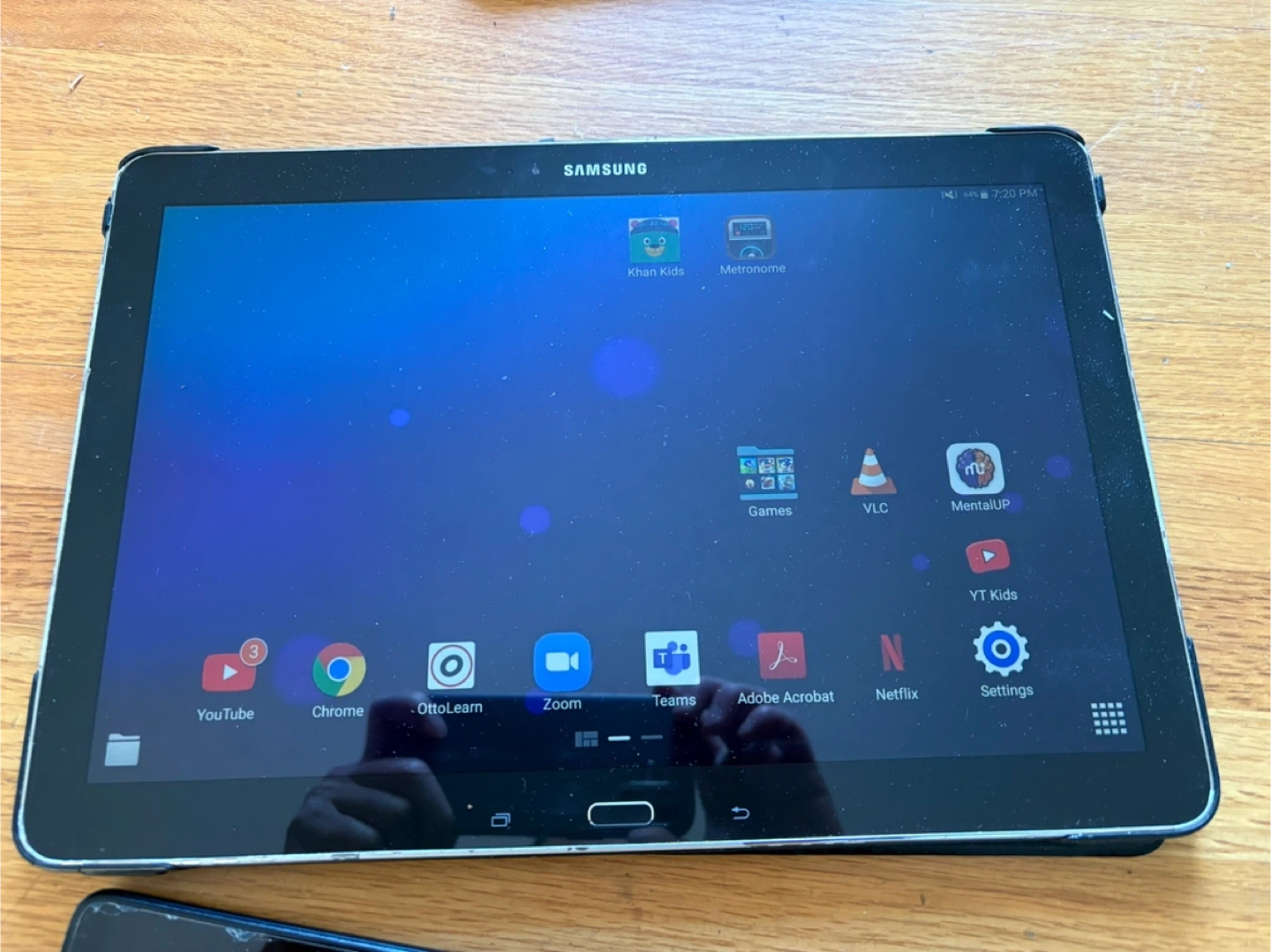 Samsung tablet with 32GB of storage. Includes various apps pre-installed. It's a reliable device for everyday use. 50$