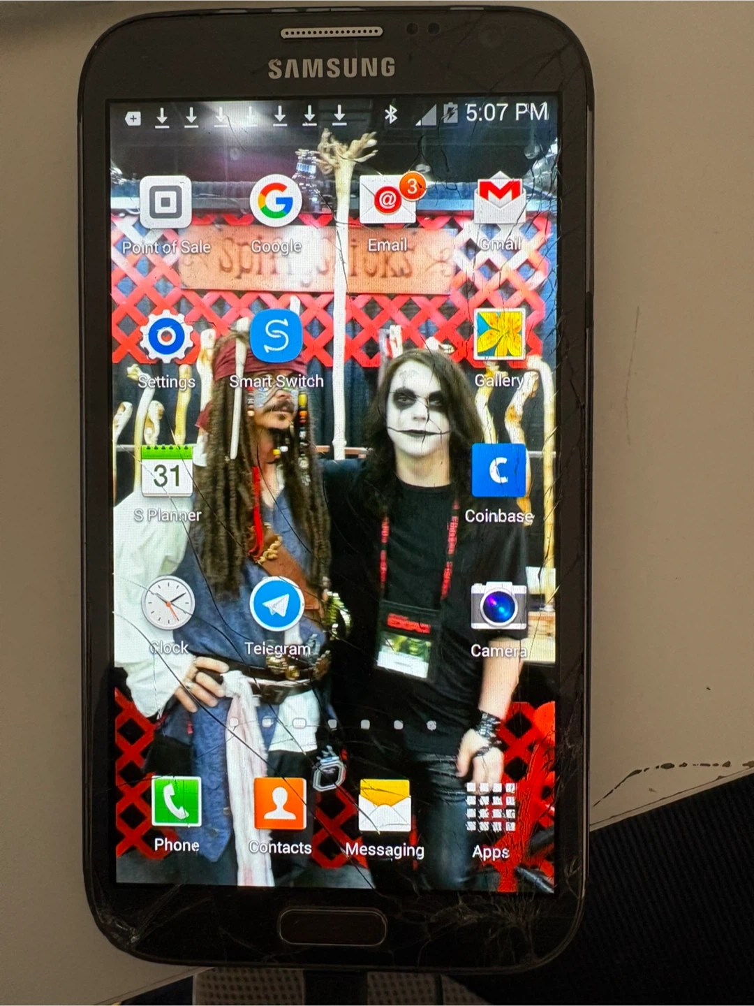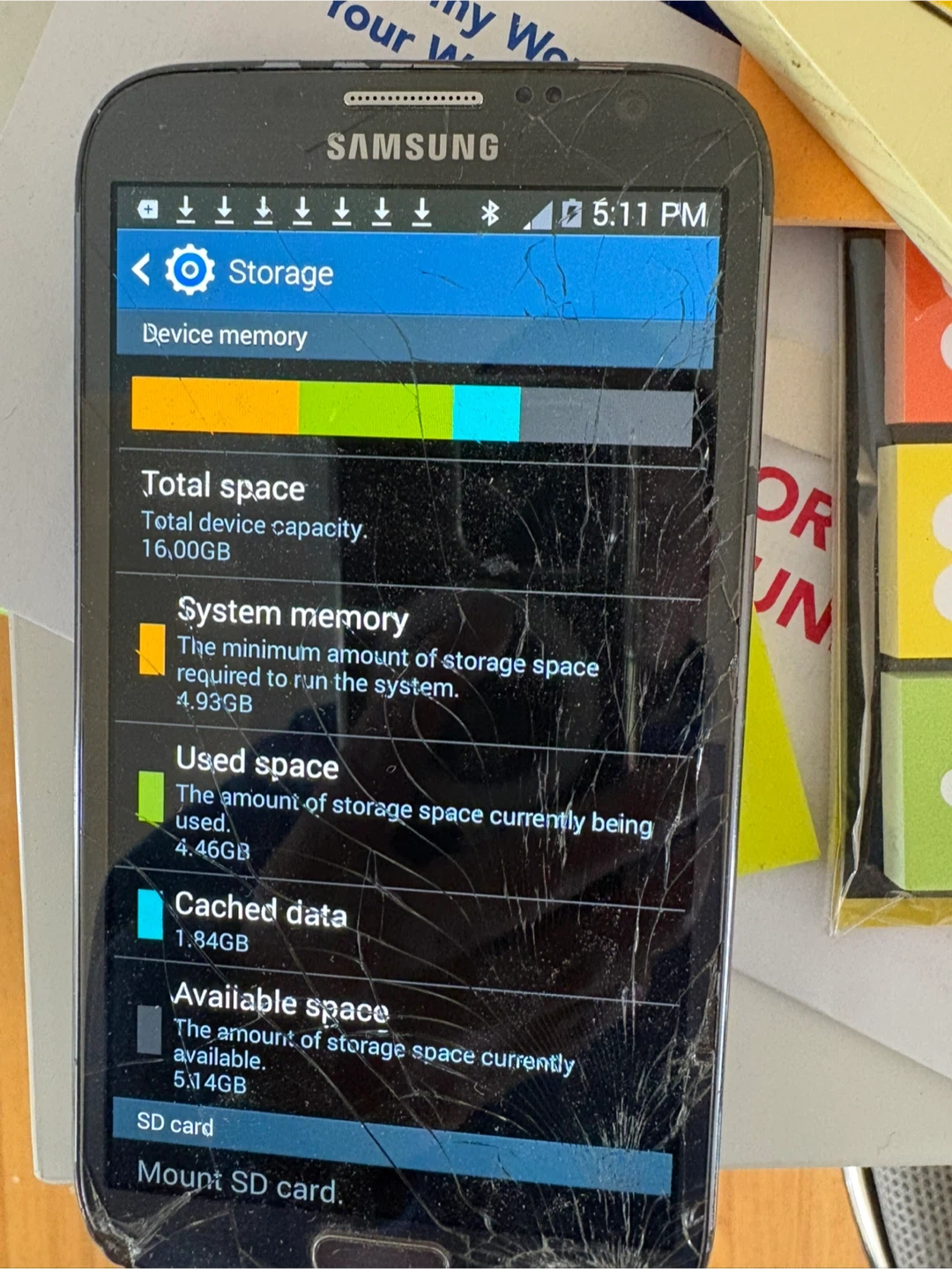 Samsung phone galaxy note 2: screen has broken, system works good. 16G 50$