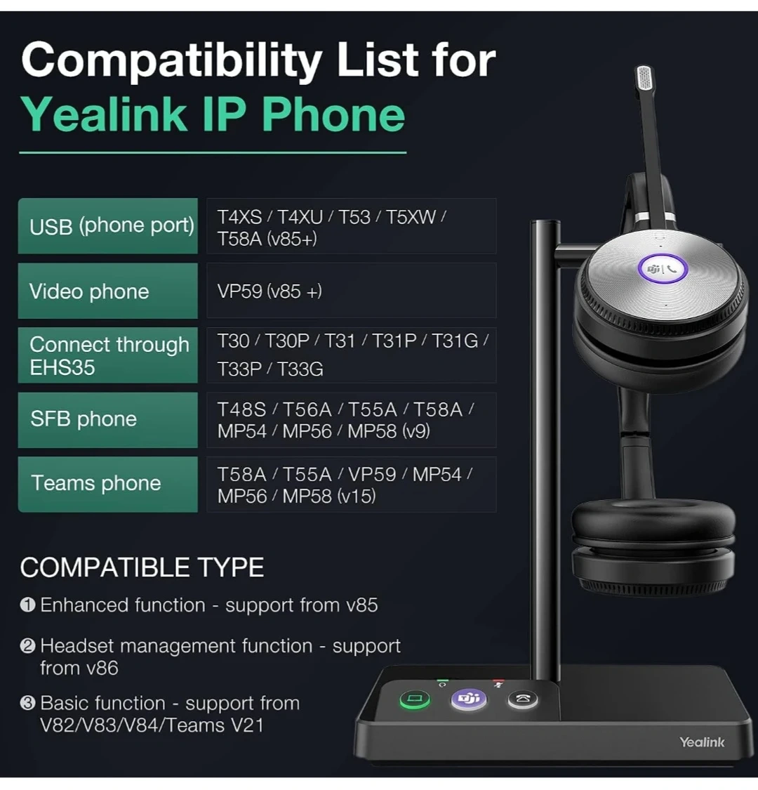 Yealink WH62 Mono Teams Wireless Noise Canceling Headset - Connects and Works with USB Enabled Desk Phones, Computers and Softphones. Headset Includes a 500ft Wireless Range + Intelligent Mute
