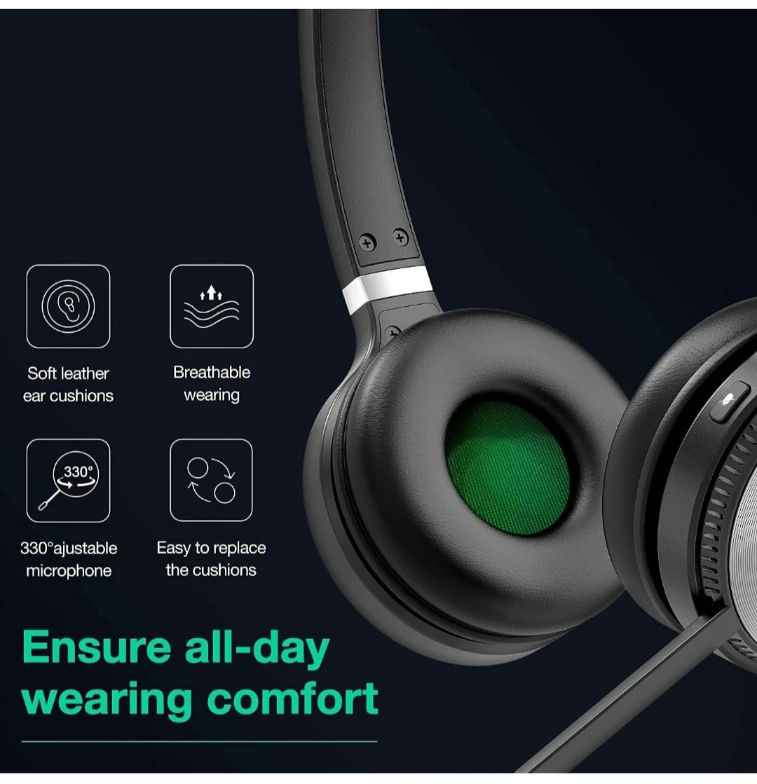 This Yealink headset features soft leather ear cushions for all-day comfort and a 330° adjustable microphone. It's designed for breathable wearing and offers easy-to-replace cushions. Deliver HD voice with its noise-cancelling microphones.