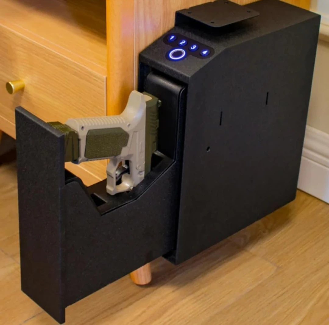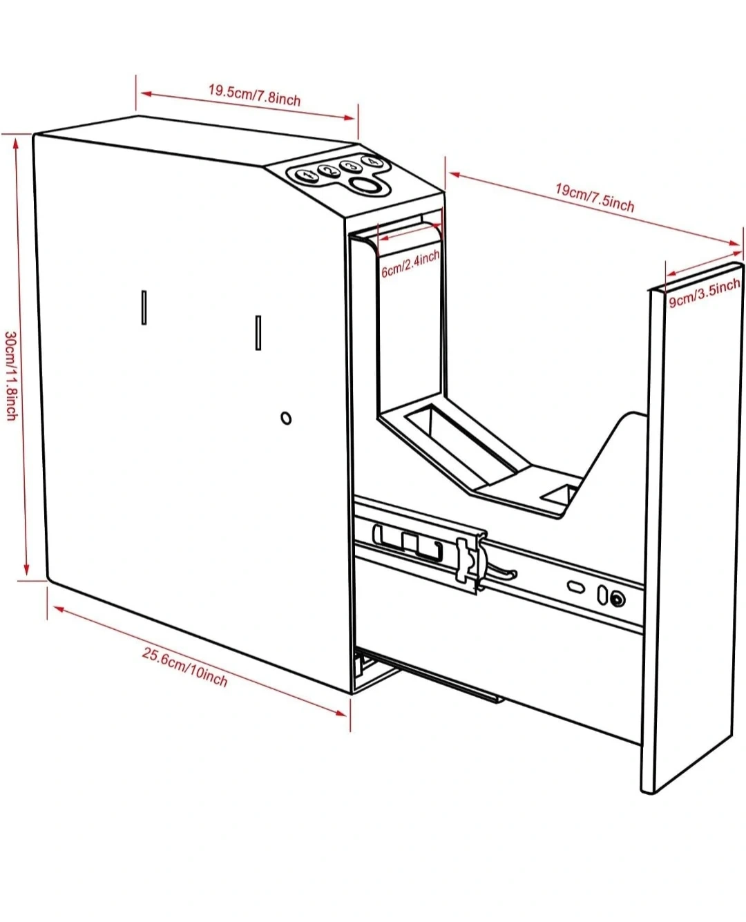 Biometric Slider Handgun Gun Safe for Nightstand, Desk, Bed Side, Truck - Auto Sliding Door Fingerprint Hand Gun Safe for Pistol -with Fingerprint, PIN Code, KEY Access