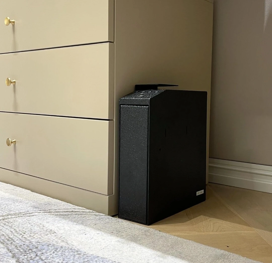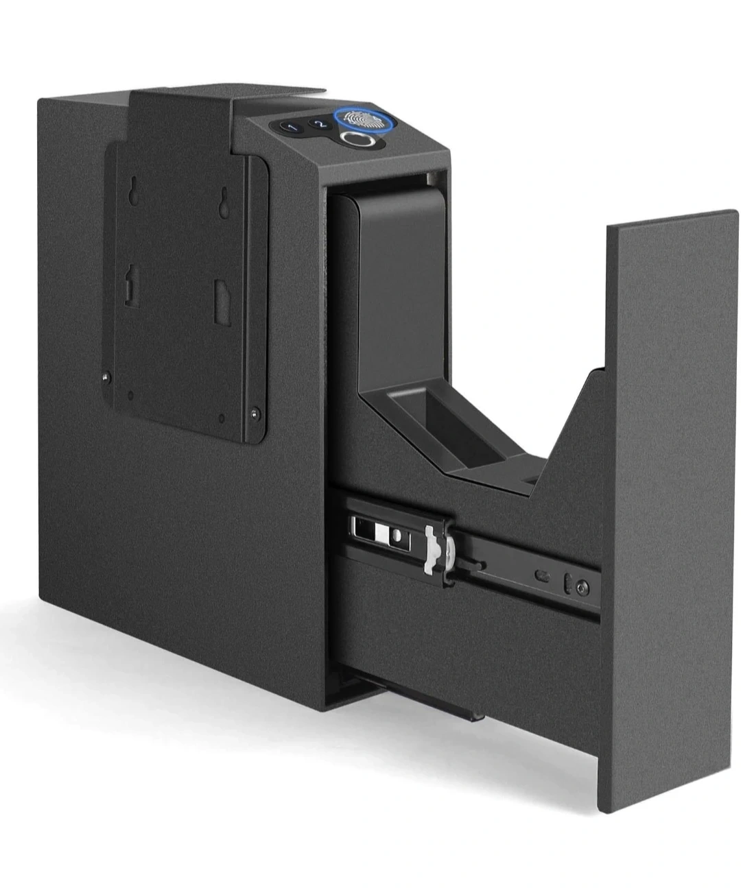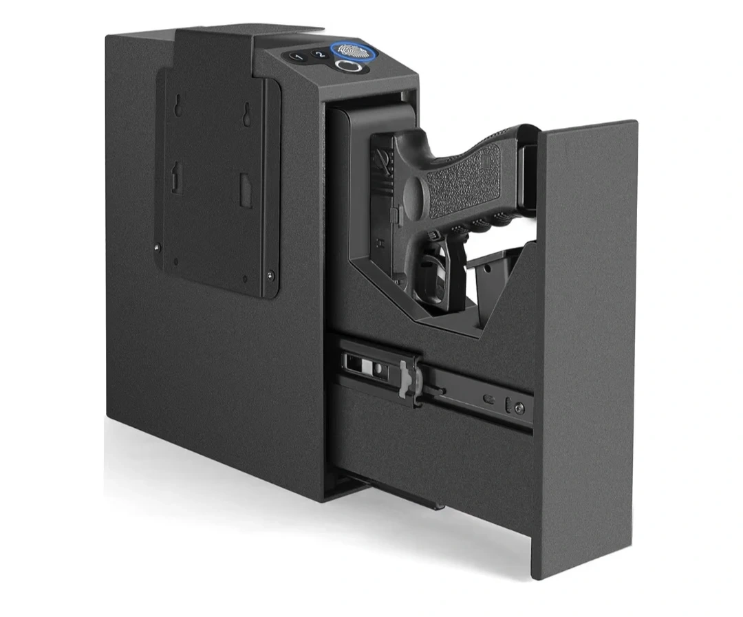 Biometric Slider Handgun Gun Safe for Nightstand, Desk, Bed Side, Truck - Auto Sliding Door Fingerprint Hand Gun Safe for Pistol -with Fingerprint, PIN Code, KEY Access
