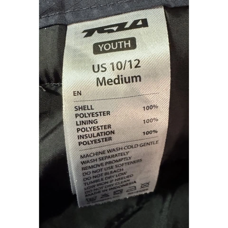 The TSLA Youth Insulated Snowboarding Ski Snow Pants in black, size medium (10/12), are perfect for young winter sports enthusiasts. Made of 100% polyester, these snow pants feature a zip closure for easy on and off. With insulation and a focus on performance, these pants are designed for activities like skiing and snowboarding, ensuring warmth and comfort in cold weather. Whether hitting the slopes or playing in the snow, these TSLA snow pants are a stylish and functional addition to any winter wardrobe. Approximate waist size is 25 inches and inseam is 26 inches.