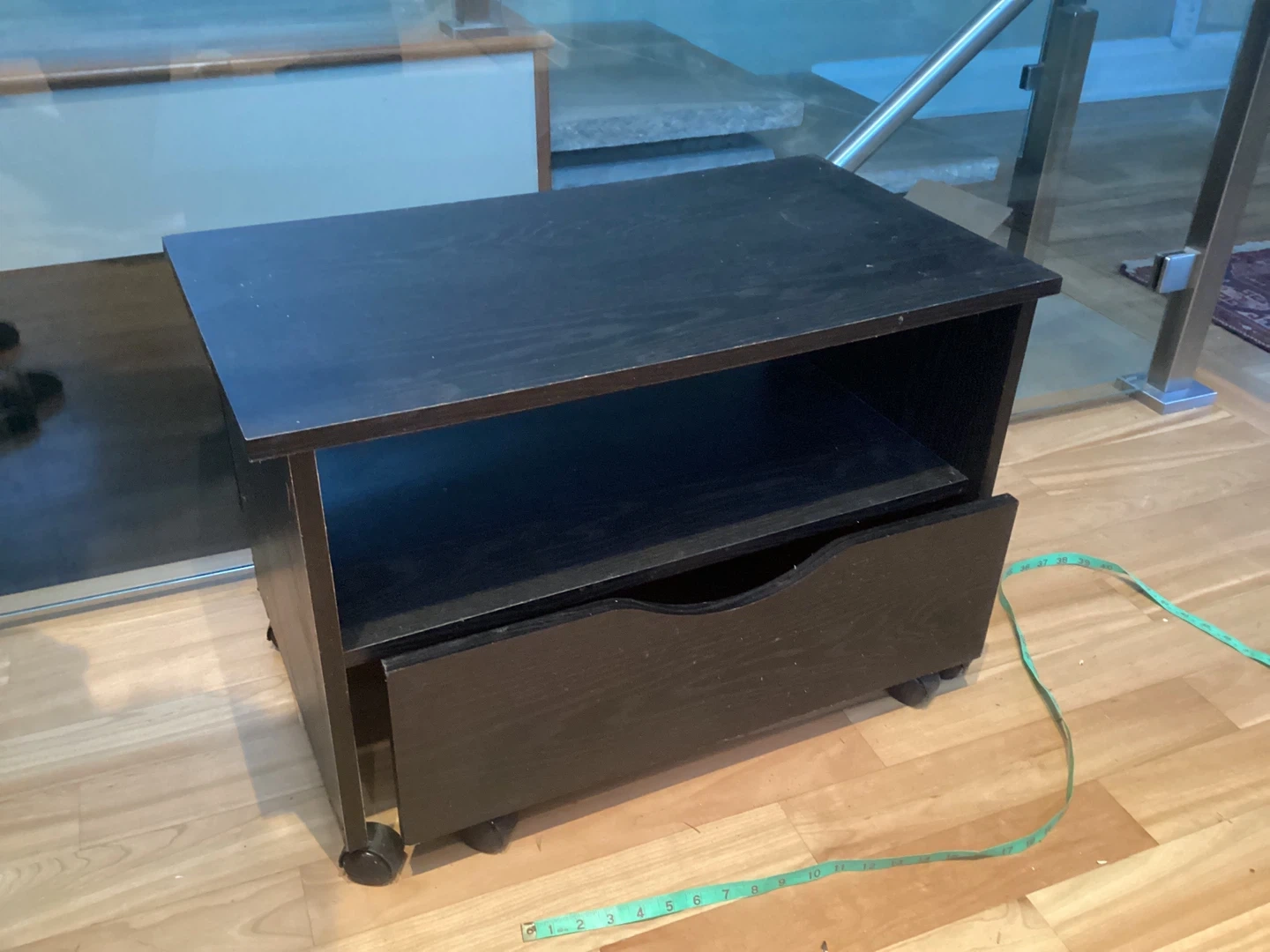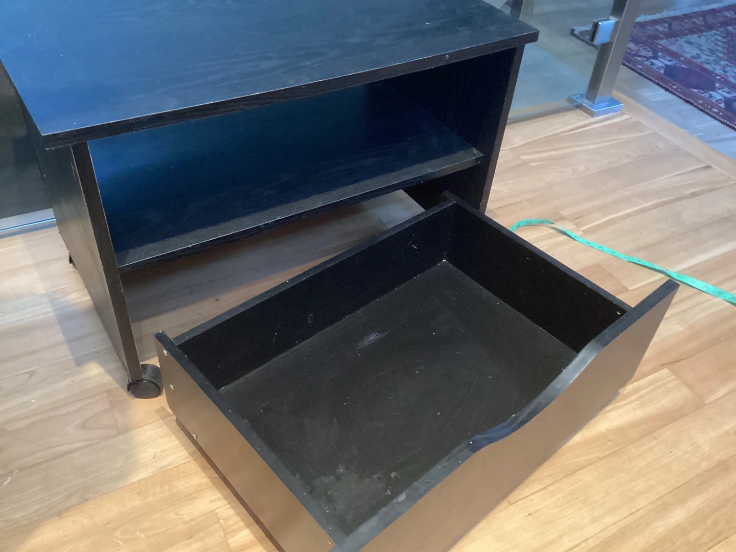 Black Stand with Drawer and Wheels