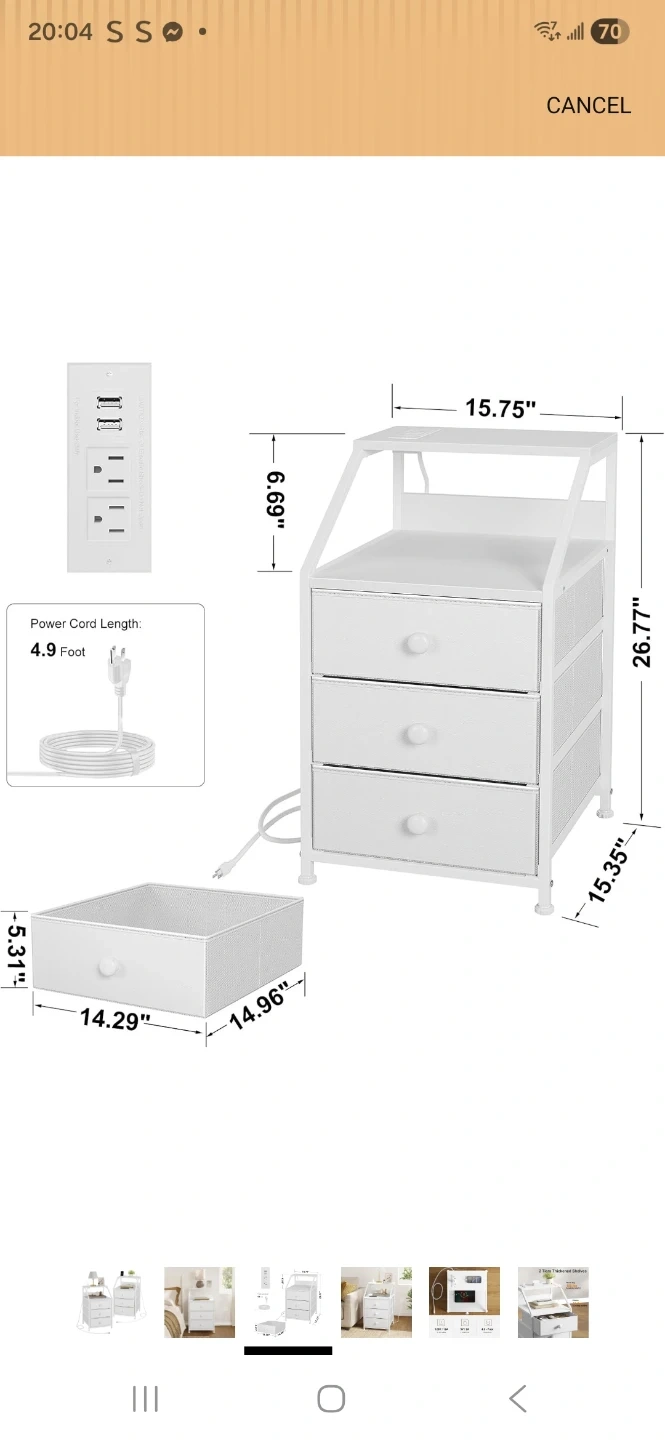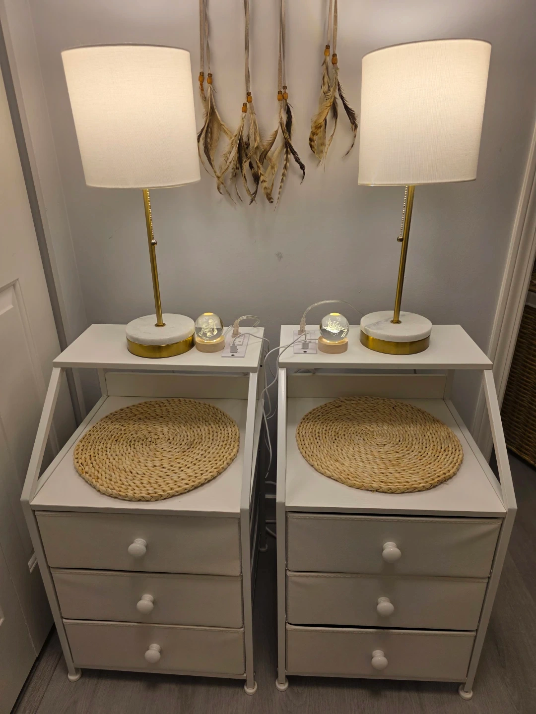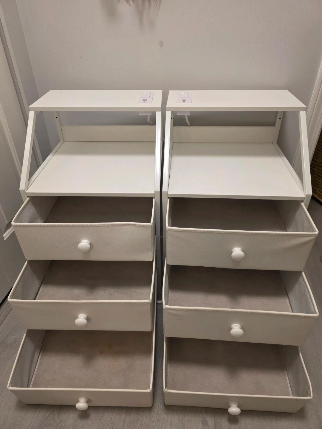 Two nightstands with power outlets and USB ports. They are practically new, very little use. I moved and they simply won't fit in our new home. The nightstands have very little use; both include two power outlets and two USB ports, which are working as shown in the video. In any case, the nightstands will be checked before delivery for your peace of mind. Specifications are in the photos of the listing.