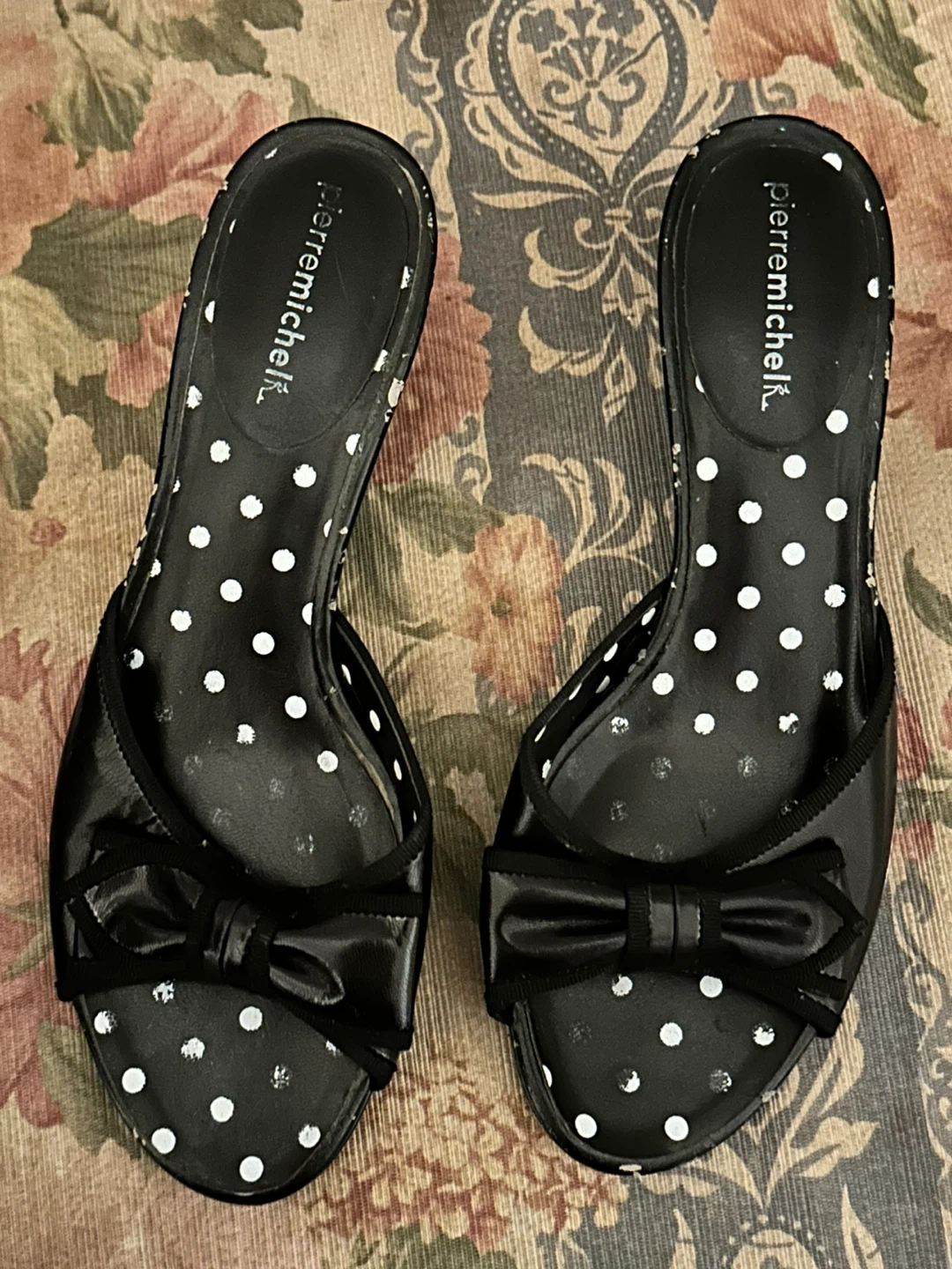 Buy & SellPierre Michell Black Polka Dot Heeled Sandals Size 6.5Pierre Michell Black Polka Dot Heeled Sandals Size 6.5FreeBlack heeled sandals with white polka dots and a satin bow accent. Genuine leather upper. Size 6.5.BrandPierre MichellWHERE TO MEETCheck LocationView MapSELLERverifiedADMSAgincourt N59043 reviews0 chats·0 favorites·26 viewsSEND CHAT TO SELLERHi ADMS! I’m interested in your listing.Hi ADMS! I’m interested in your listing.Get the Karrot app to chatSign In to chat