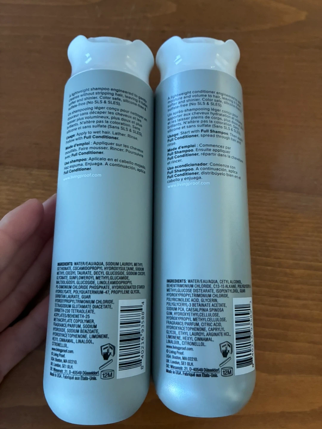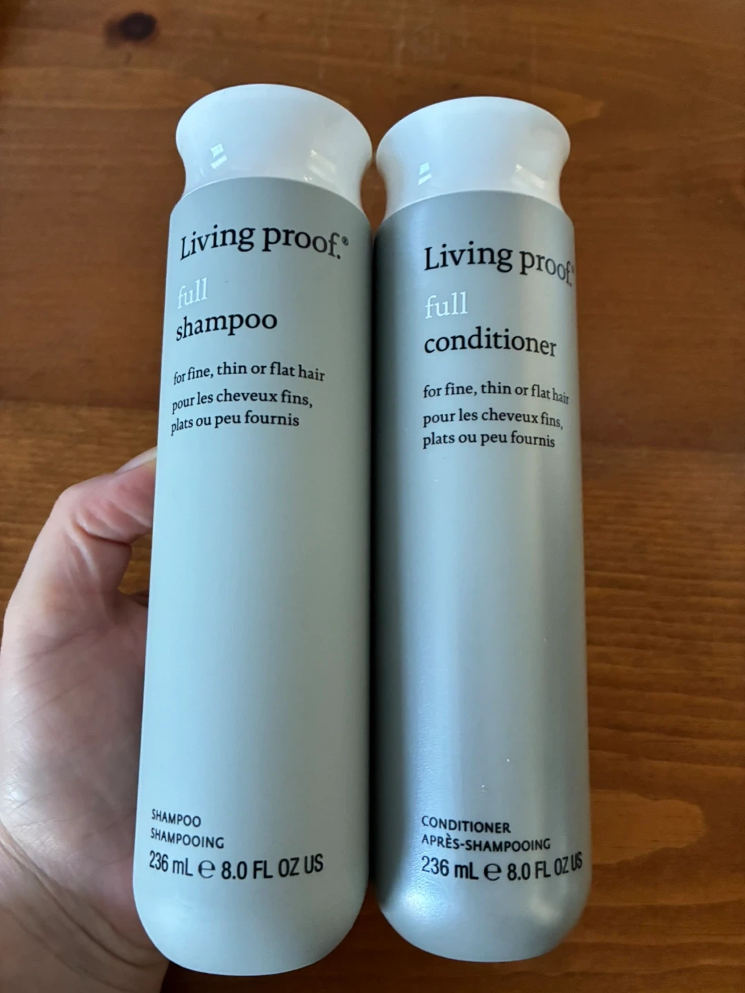 This set includes Living Proof Full Shampoo and Full Conditioner. Both are formulated for fine, thin, or flat hair. Each bottle contains 8.0 fl oz.